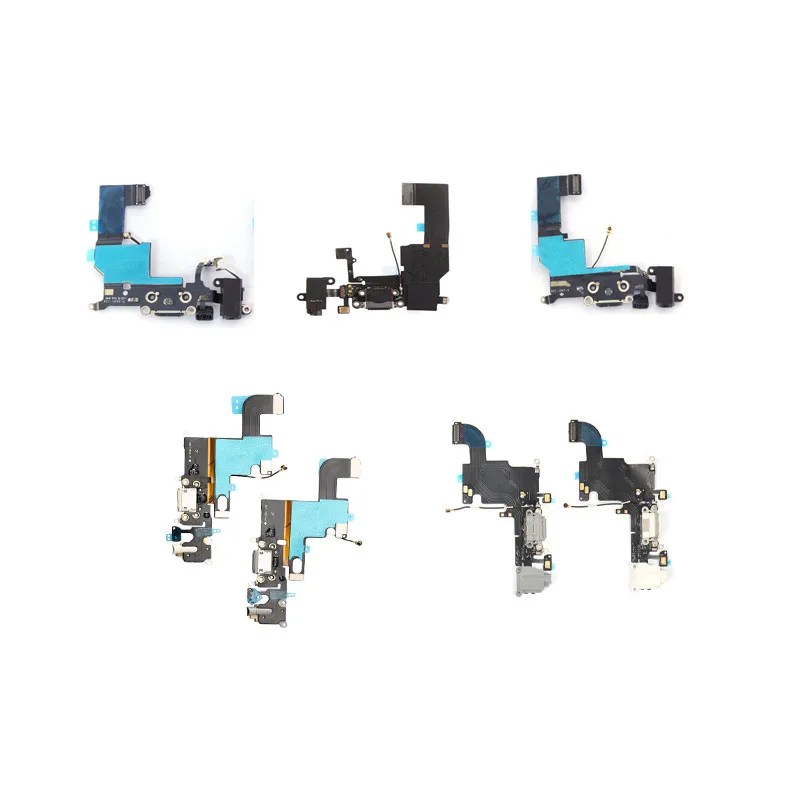 Nuevo cargador puerto de carga USB conector de base de repuesto para iPhone 4, 2, 5, 5, 1, 5, SE 6, 6S, USB, conector de Audio para auriculares, Cable flexible