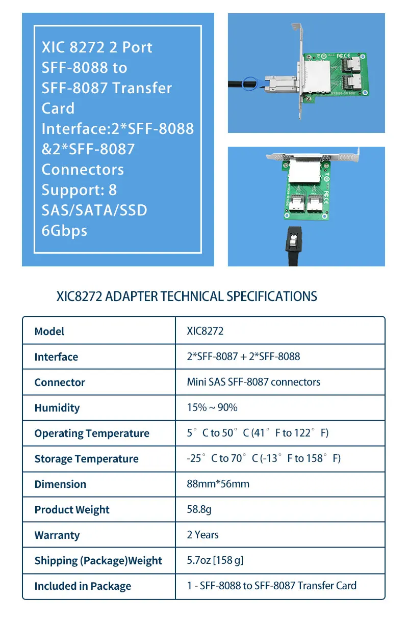 Puerto Dual de SFF-8087 a placa de SFF-8088, 6 Gb/s