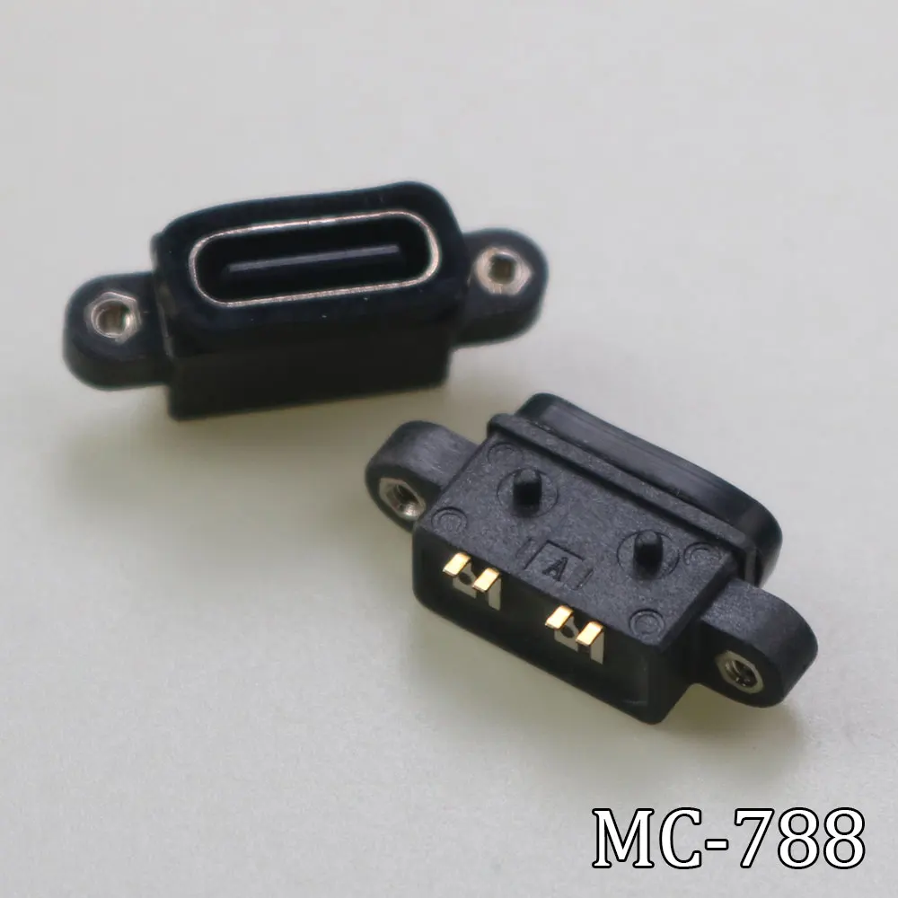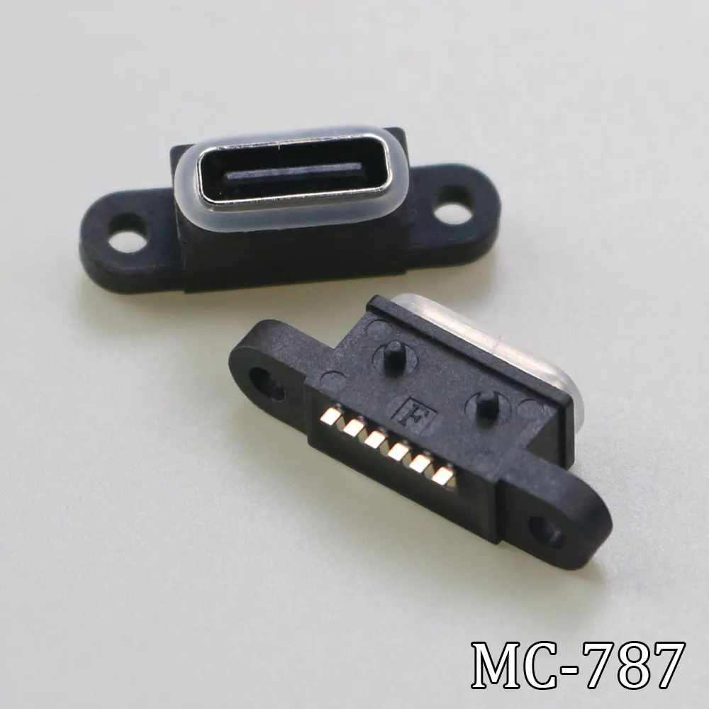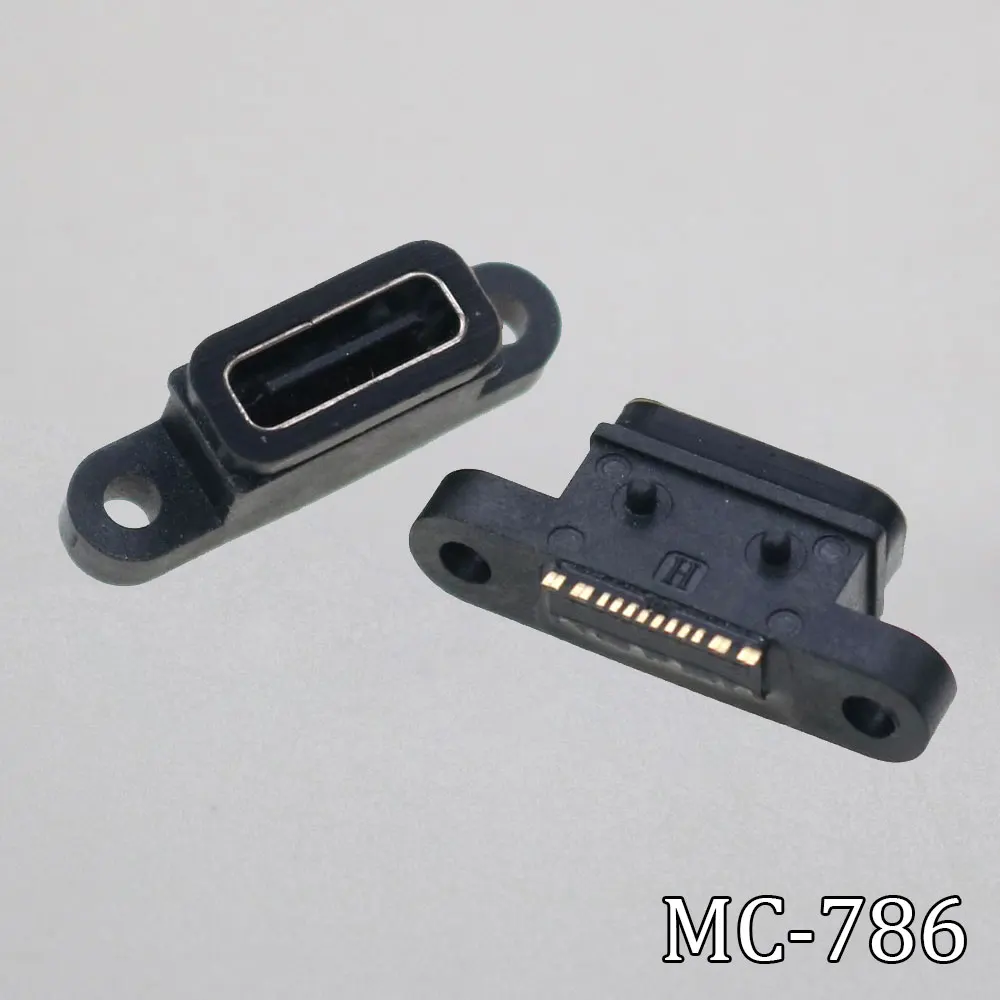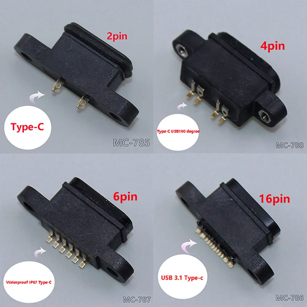 1 piezas tipo C USB 2Pin 4Pin 6Pin 16Pin puerto de enchufe hembra impermeable con orificio de tornillo interfaz de carga rápida conector USB IP67