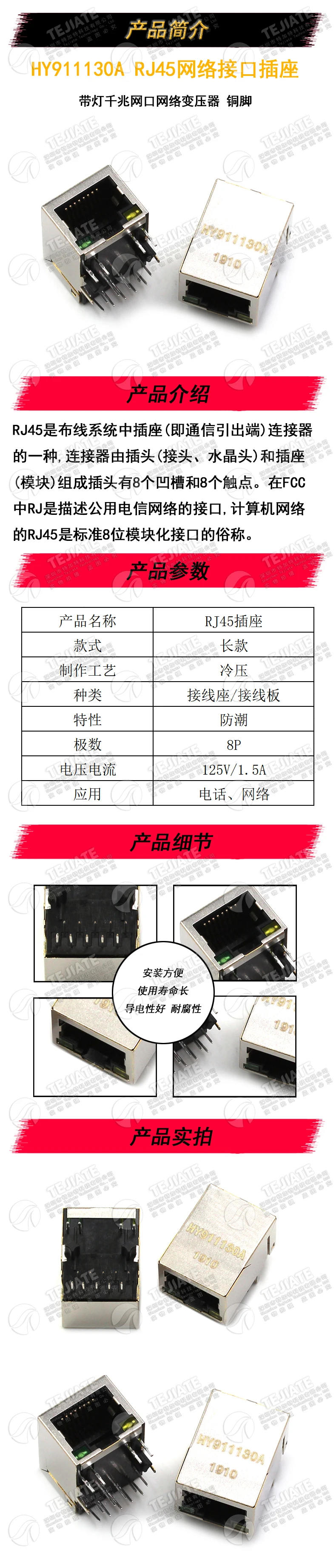 Puerto Ethernet Gigabit HY911130A/HR911130A, transformador de red RJ45, nuevo