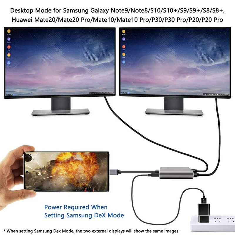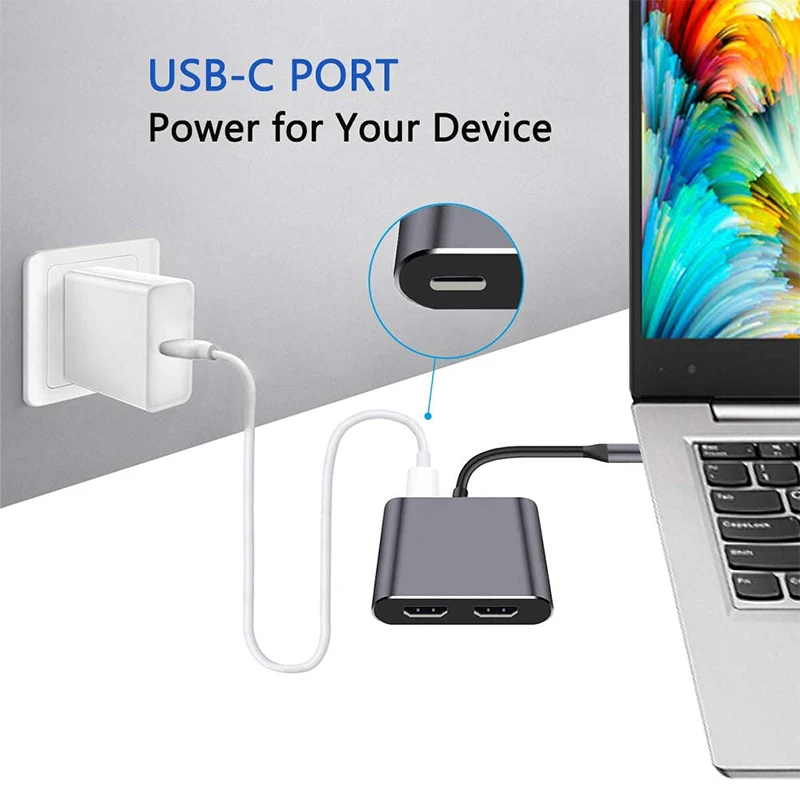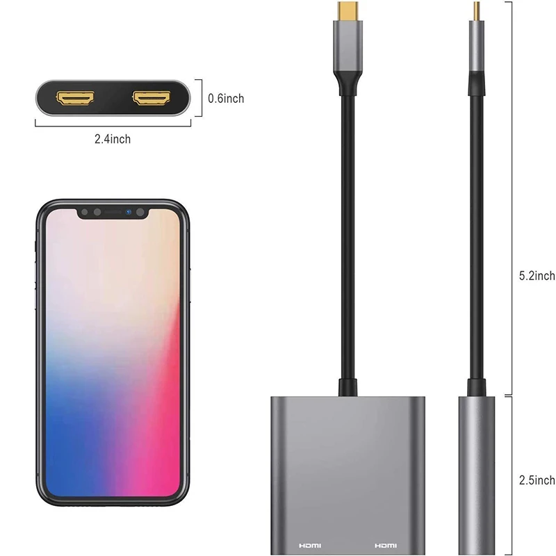 Comprar Puerto HDMI Dual 4 en 1, concentrador USB C a HDMI, admite modo espejo y extendido con carga Usb 3,0 PD, divisor USB para computadora portátil tipo C