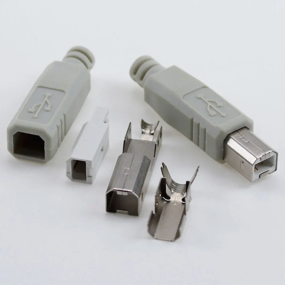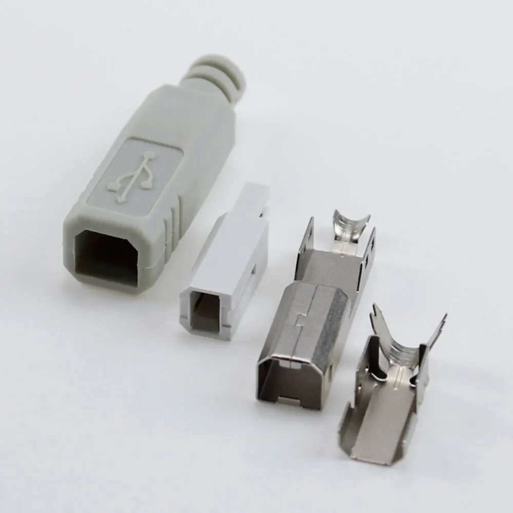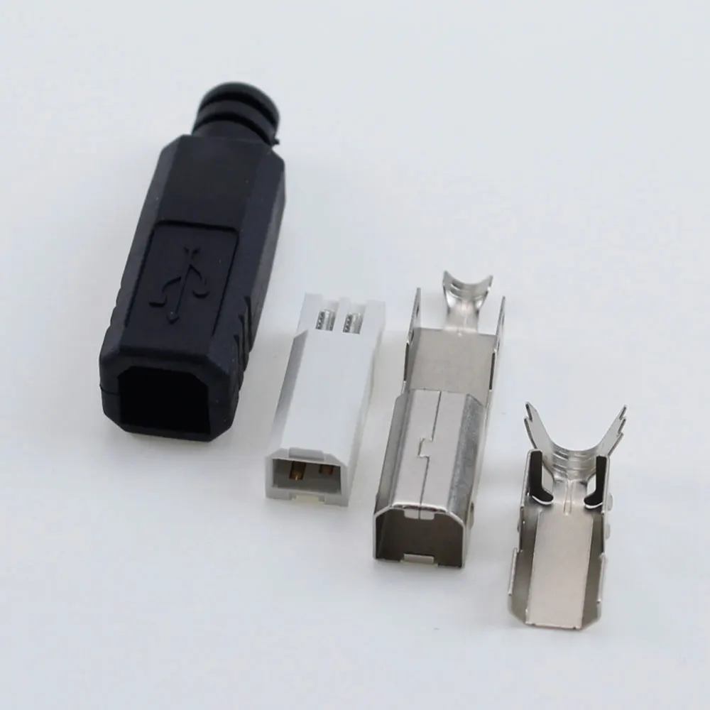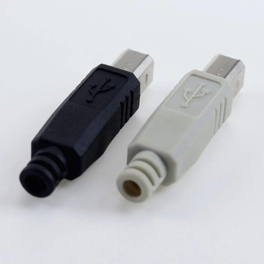 Conector adaptador de montaje de puerto de impresora macho DIY, Conector de enchufe DIY, carcasa de plástico de soldadura 4 en 1, 1, 1, USB 2,0, tipo B, 2 pines