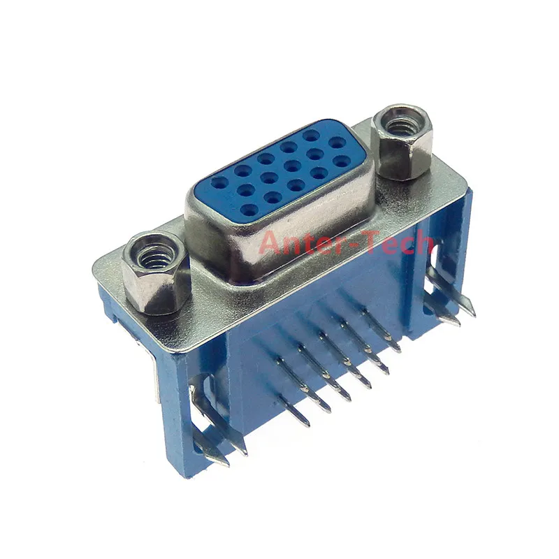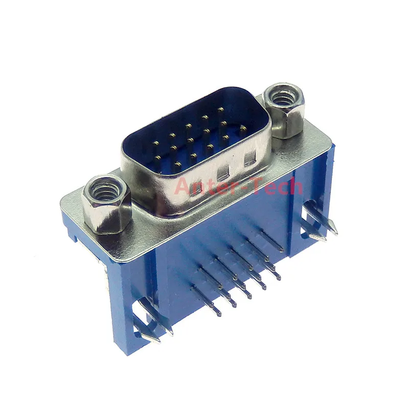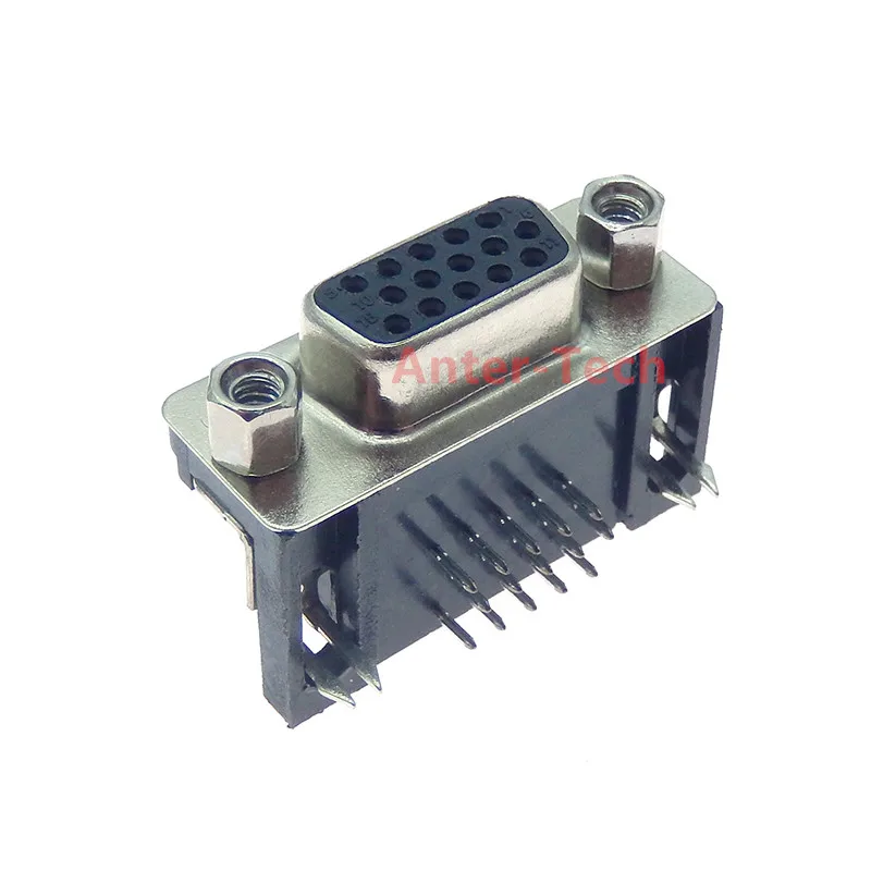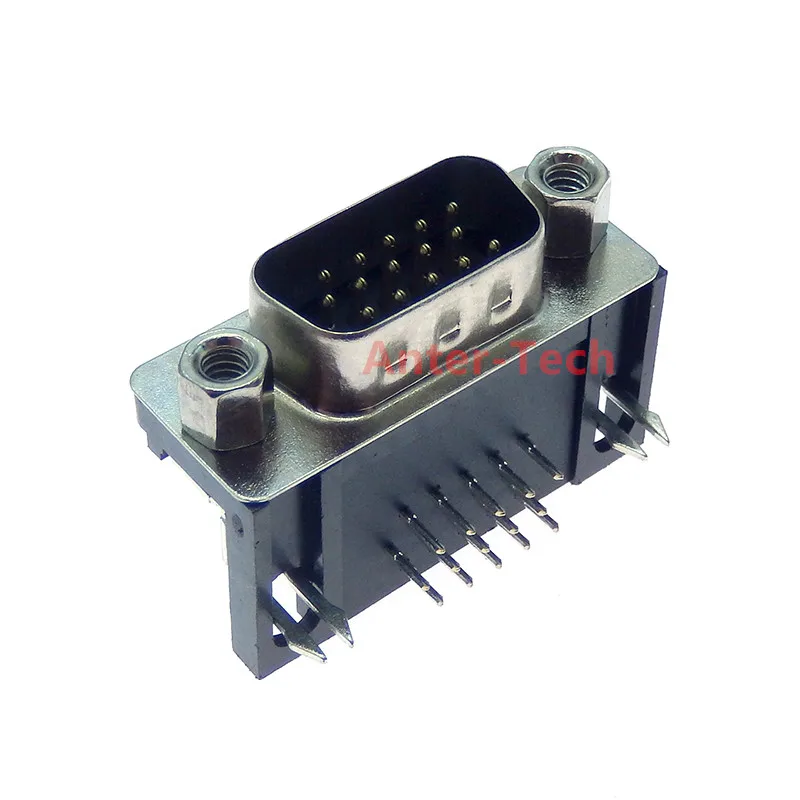 Comprar Puerto paralelo DR15 de 3 filas, Conector de 90 grados, adaptador de enchufe VGA DB15, color negro, 15 Pines, D Sub macho, 15 vías, PCB, 2 unidades