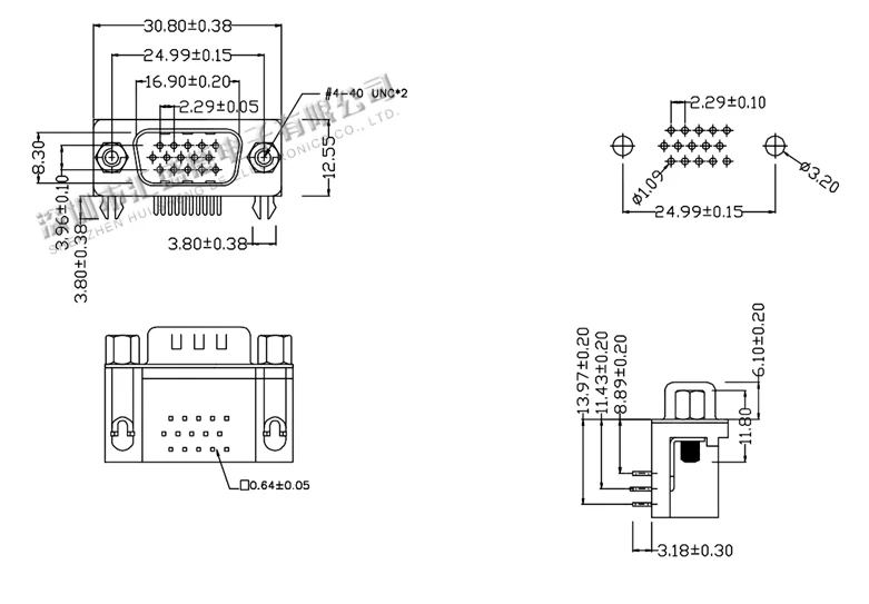 2PCS Black DR15 3Rows Parallel Port 15 Pin D Sub Male 15 Way PCB 90 Degree Connector DB15 Socket Plug VGA Adapter