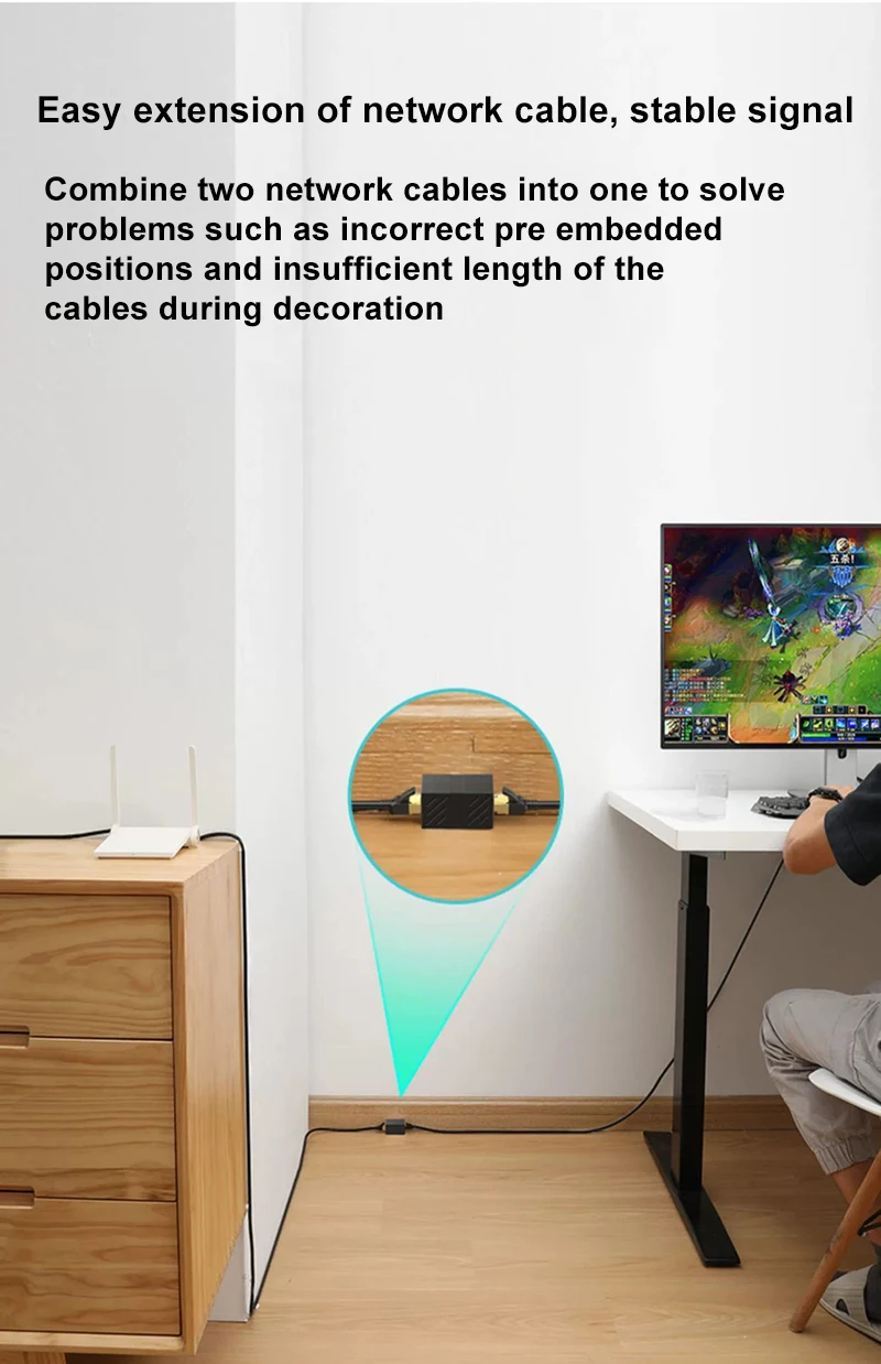 Adaptador de extensión de cable de red Ethernet con conector Lan hembra a hembra RJ45