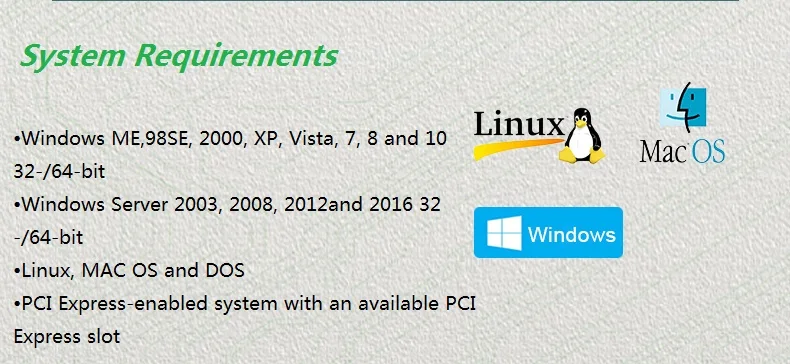 • Windows ME,98SE, 2000, XP, Vista, 7, 8 y 10 32-/64-bit