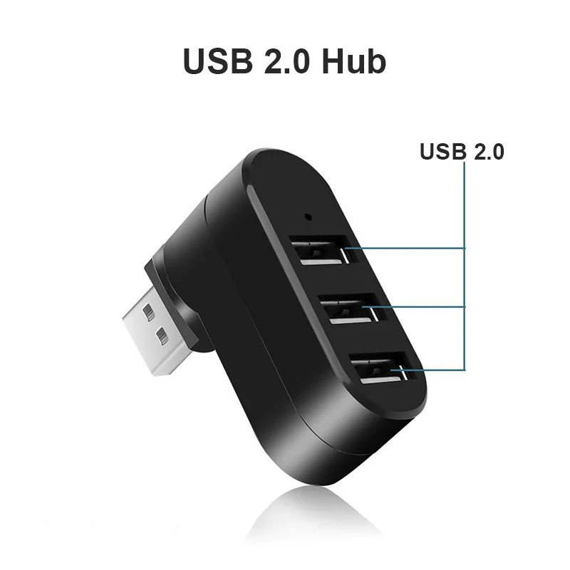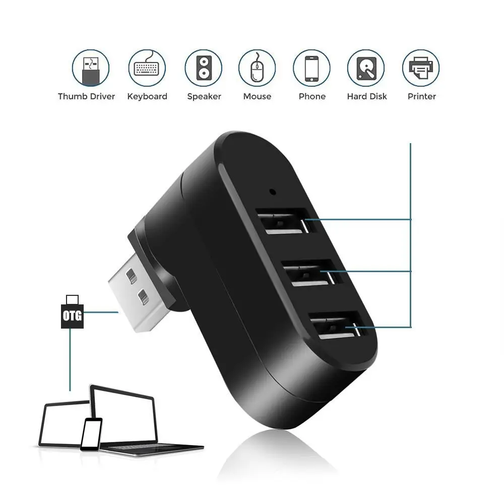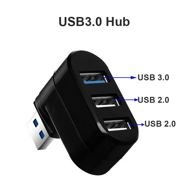 SOPORTE USB 3.0 HUB 180° Adaptador de rotación extensor Mini caja divisora de 1 a 3 puertos USB 2,0 de alta velocidad para PC portátil