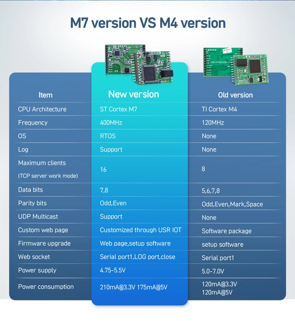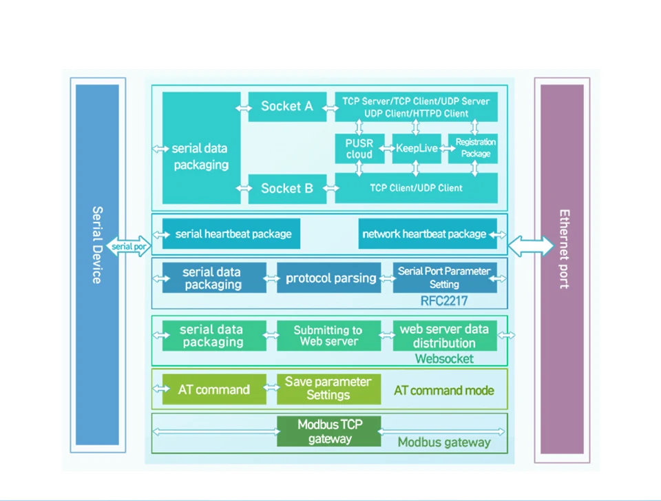 Núcleo, rango de temperatura de trabajo industrial y pila de protocolo TCPIP. Auto-MDI/MDIX, Puerto RJ45 con servidor TCP de 10/100MbpsTCP, cliente TCP, cliente UDP, modo de trabajo del servidor UDP y del cliente httpsD. Los puertos múltiples pueden funcionar de forma independiente al mismo tiempo. Puede distinguir qué puerto serie se conecta al dispositivo a través del número de puerto. Admite puerto serie virtual y proporciona el software correspondiente. De 600bps a 1024K BPS; Compruebe el bit de None,Odd,Even,Mark and SpaceDNS y DHCP supportedProporcione PC TCP/IP socket Ejemplo de programación como VB,C ++,Delphi, página web incorporada de Android e iOS; también puede personalizar la página web para los usuarios Botón de recarga, una tecla para restaurar la configuración predeterminada RJ45 con luz indicadora de enlace/datos, transformador de aislamiento integrado y aislamiento electromagnético de 2 KV MAC único global Dirección comprada en IEEE (comienza con el número de referencia: 1: 2); el usuario puede definir la dirección MAC. Admite actualización de firmware a través de la red. Admite mantenimiento, detecta rápidamente los enlaces muertos. Cuenta y contraseña de soporte, se puede utilizar para iniciar sesión en la página y para la configuración de red. Admite Websocket de un canal, realiza la transmisión transparente bidireccional entre la página web y el serial 0. Admite Modbus RTU a Modbus TCPSupport UDP Broadcast. Función