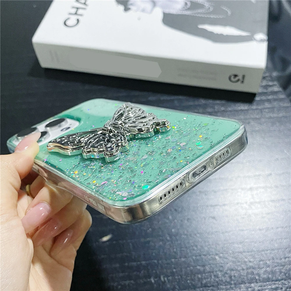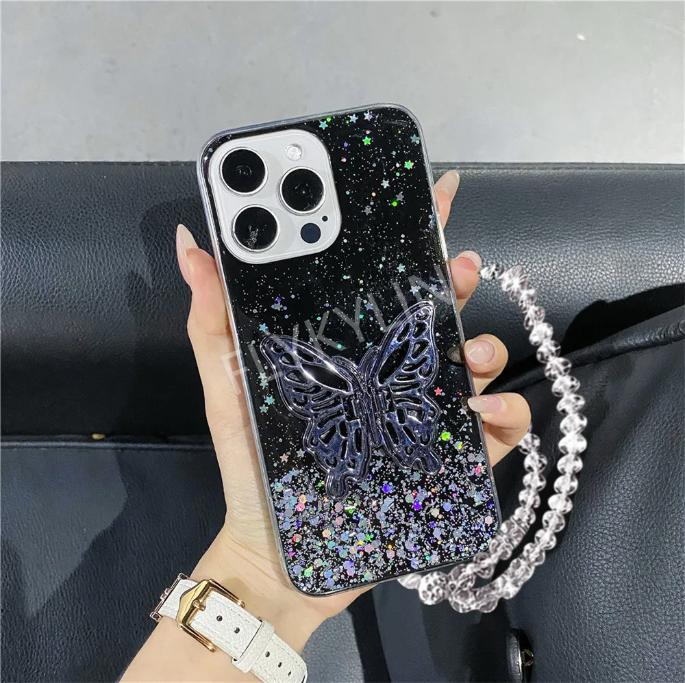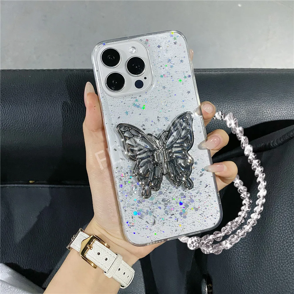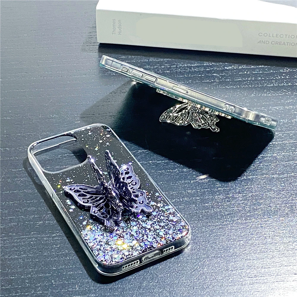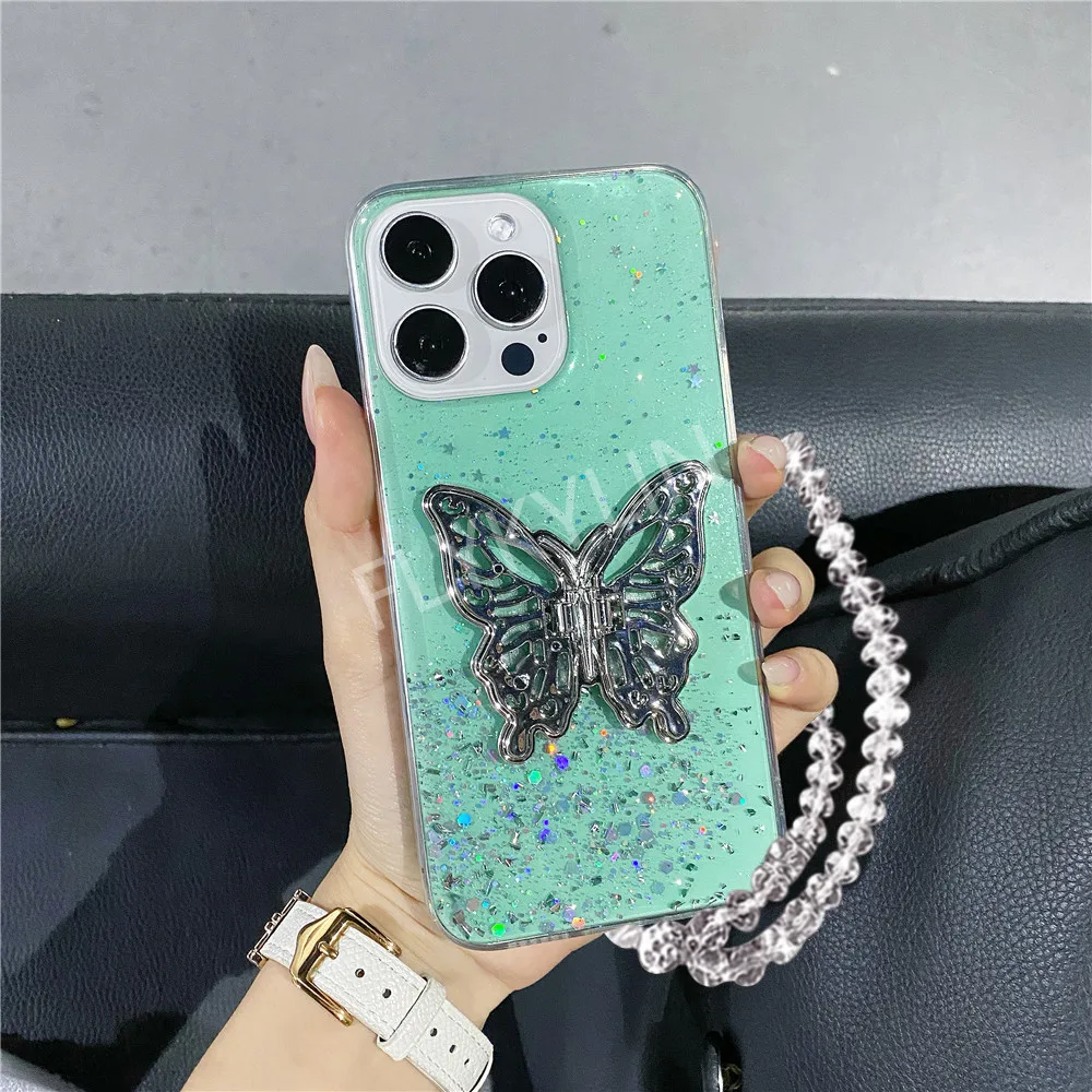 Pulsera de cristal 3D soporte de mariposa funda con purpurina para OPPO A16 A16S A54S A53S A5 A9 A53 2020 Reno 11 12 Pro 11F 12F funda de teléfono