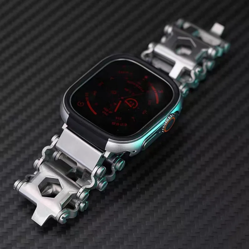 1.Cada sección de cadena de acero es igual a una herramienta, que incluye un destornillador, un abrelatas, un abridor de botellas, un abridor y una llave Allen.