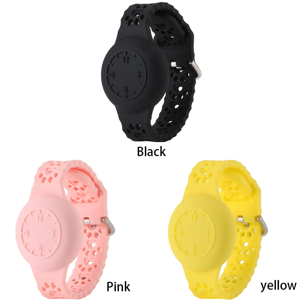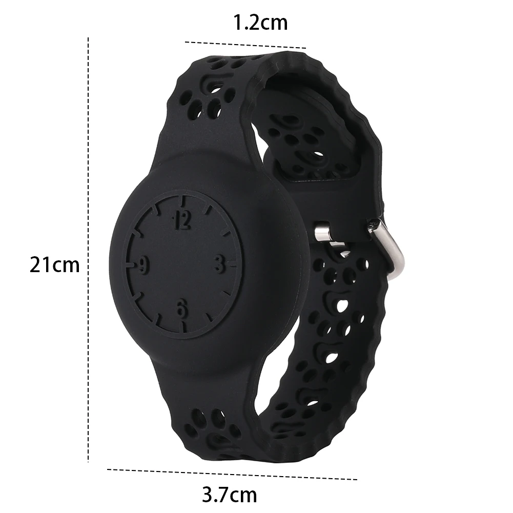2. Ajuste ajustable:La funda protectora de silicona oculta es perfecta para niños y niños pequeños, con una hebilla ajustable que garantiza un ajuste cómodo y seguro en la muñeca, evitando que la etiqueta de aire se caiga durante las actividades.