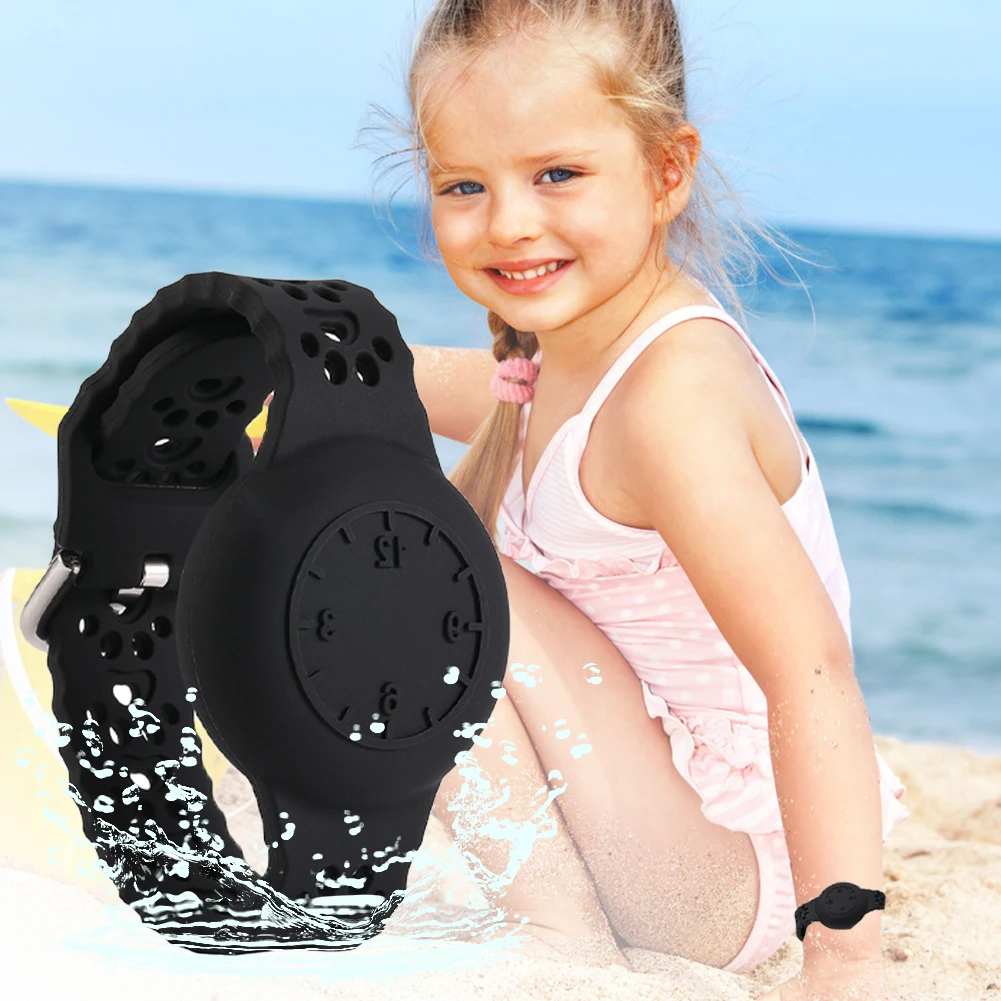 2. Ajuste ajustable:La funda protectora de silicona oculta es perfecta para niños y niños pequeños, con una hebilla ajustable que garantiza un ajuste cómodo y seguro en la muñeca, evitando que la etiqueta de aire se caiga durante las actividades.