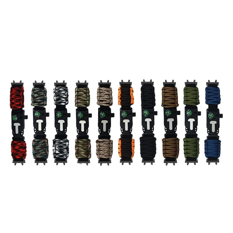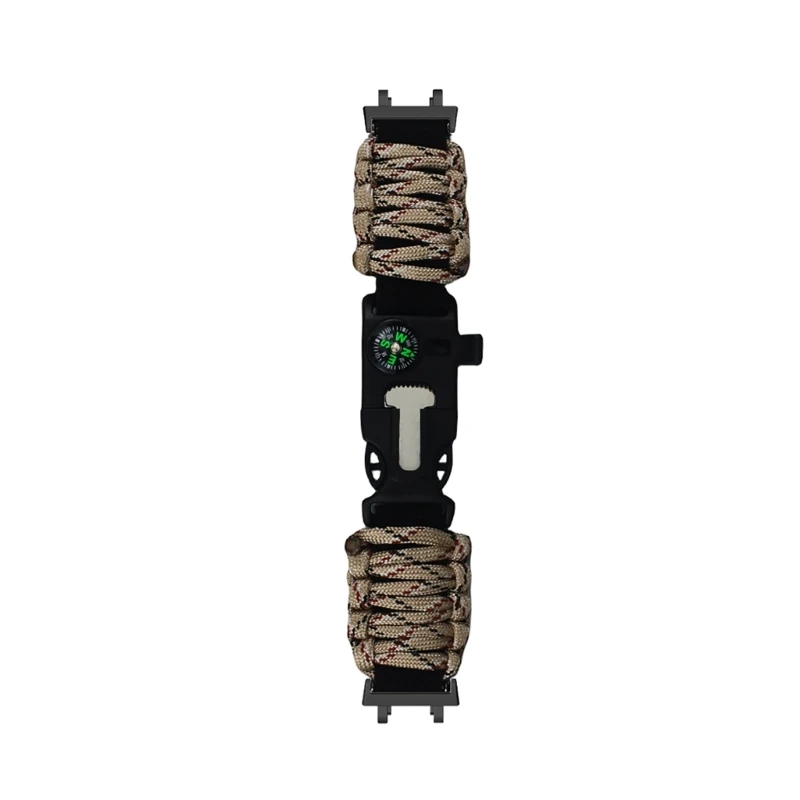 Si es necesario, puede desmontarlo y usarlo como un trozo de cuerda. En caso de emergencia en un campamento al aire libre, esta pulsera de supervivencia puede ayudarle, proporcionándole instrucciones cuando se pierde y proporcionándole herramientas de lucha contra incendios cuando tiene frío. Gracias a su ingenioso diseño, es conveniente para el transporte y el almacenamiento.