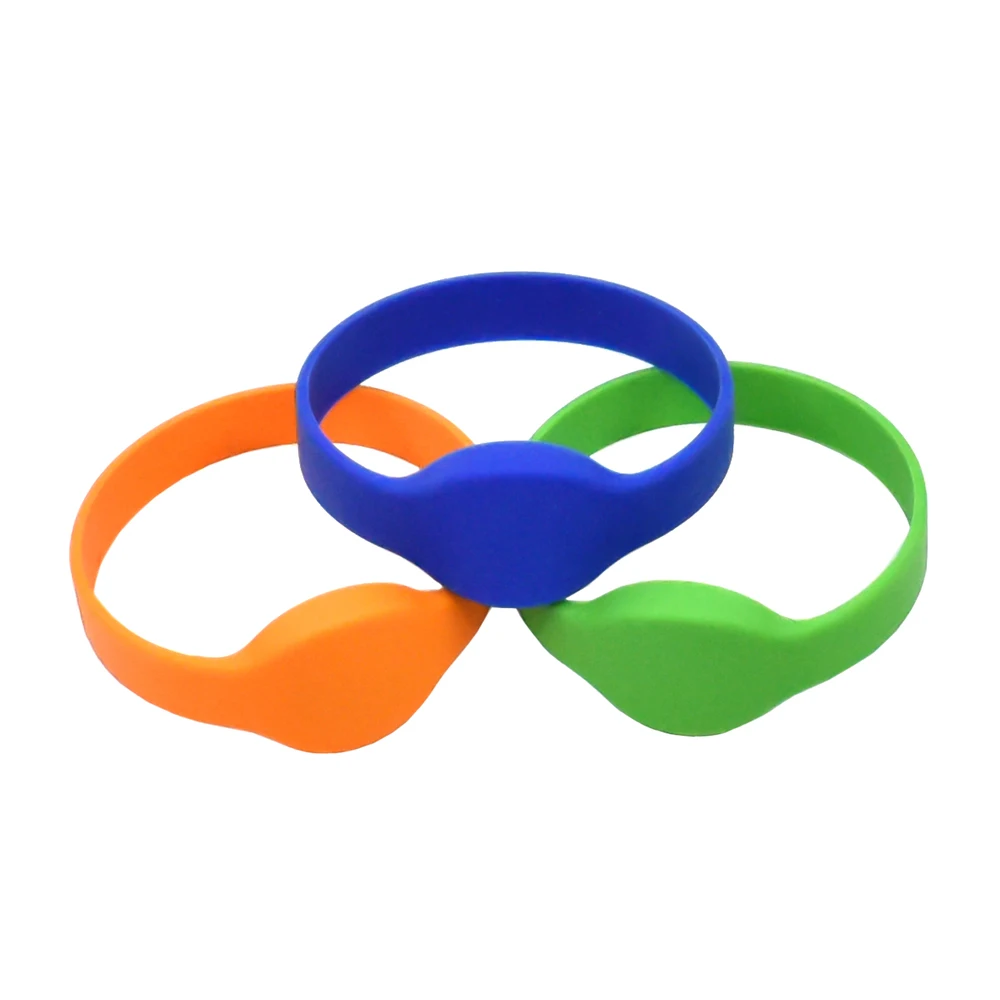 Frecuencia125 KHzEstándarISO EM4100 y compatibleMaterialSilicona (100% aprobado por SGS, RoHS, ecológico)ImpresiónNeutral: sin logotipo (algunos pueden imprimir con RFID)