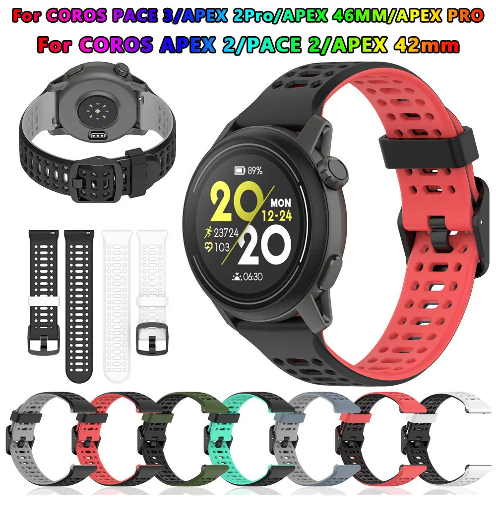 Comprar Pulsera de silicona para reloj COROS PACE 3 2, Correa deportiva para COROS APEX 2 Pro 46mm 42mm suave 20mm 22mm, correa de reloj transpirable