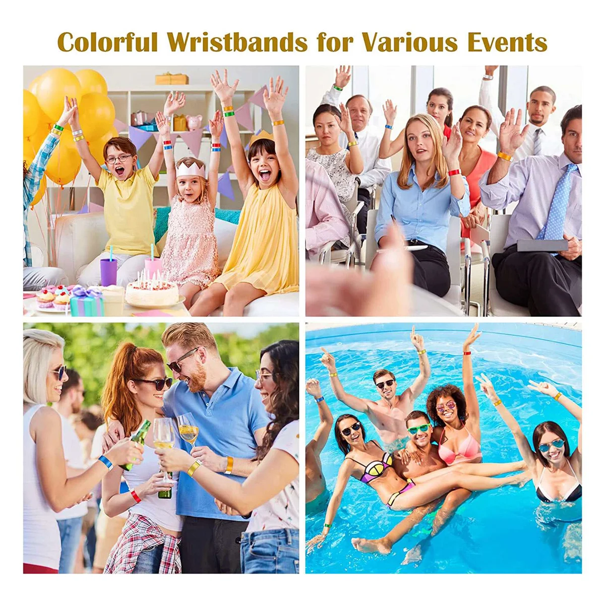 Comprar Pulseras de colores neón para eventos, muñequeras ligeras e impermeables de papel sintético para identificación de actividades, 600 piezas