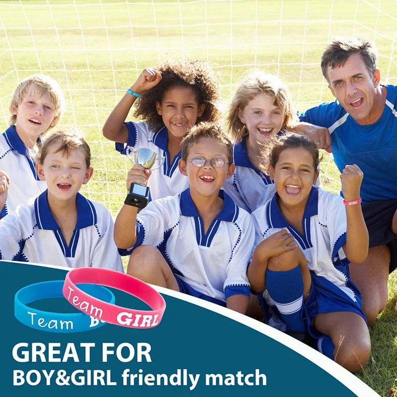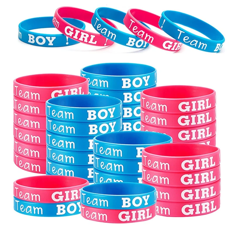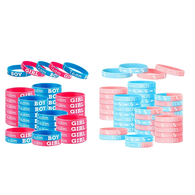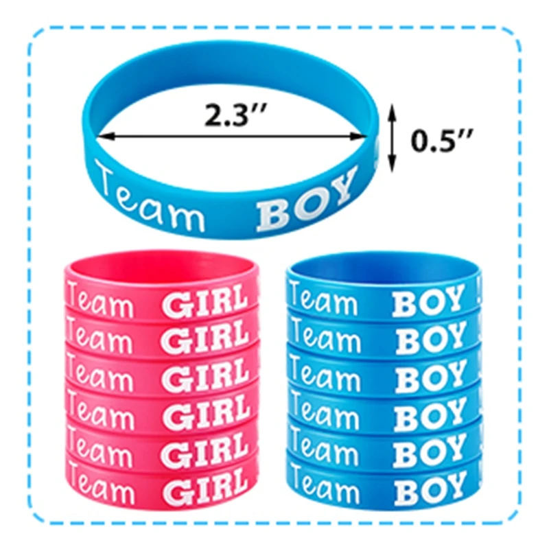 Diseño: nuestras pulseras de goma están impresas con las palabras "Team Girl" o "team boy", que se ajustan bien al baby shower y agregan más ambiente de fiesta, sus amigos y familiares estarán encantados de que haya pensado en cada pequeño detalle con estas pulseras de silicona "Team Girl" y "Team Boy"
