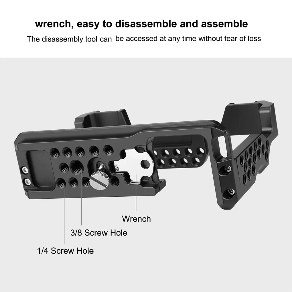 Uso: Esta jaula de cámara está diseñada con puertos de tornillo de 1/4 y 3/8 pulgadas, por lo que puede montar muchos dispositivos en una cámara.