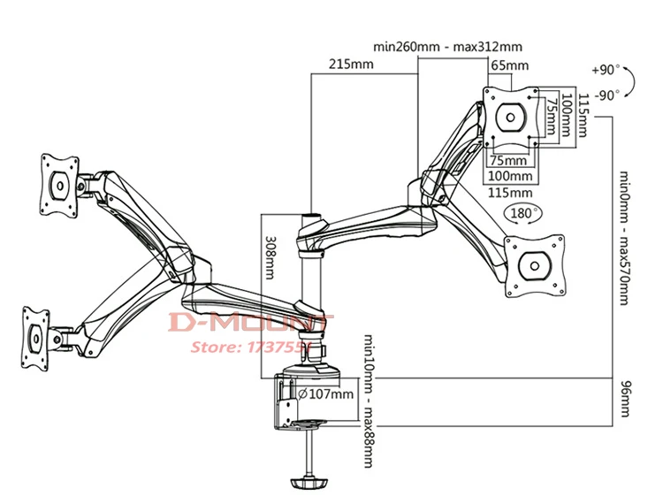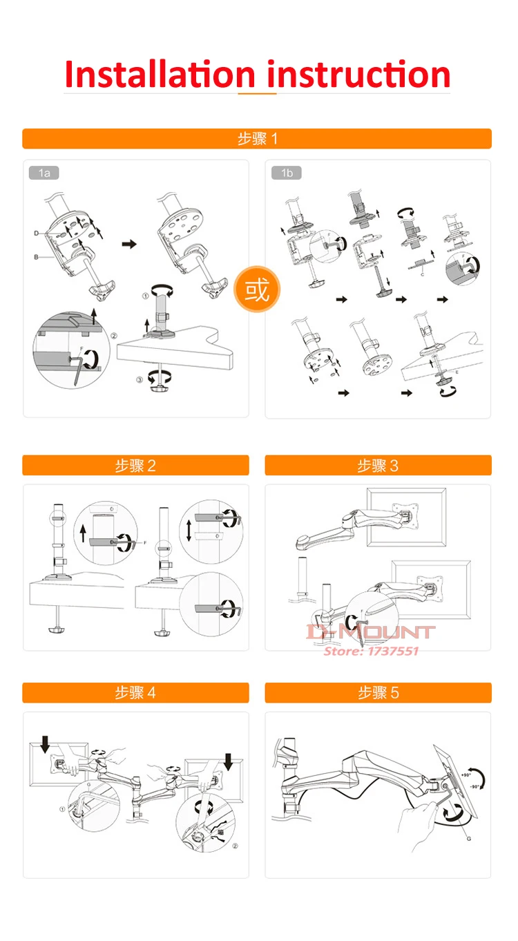 Comprar Puntal de gas de presión de aire de movimiento completo, montaje de mesa de tv lcd doble, 27 pulgadas, 9kg, 2 monitores, soporte de pantalla de escritorio, soporte Led