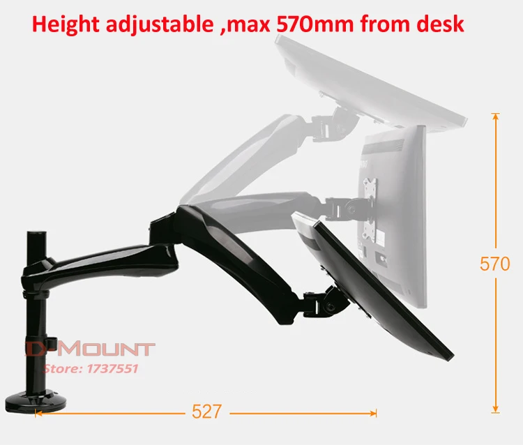 Comprar Puntal de gas de presión de aire de movimiento completo, montaje de mesa de tv lcd doble, 27 pulgadas, 9kg, 2 monitores, soporte de pantalla de escritorio, soporte Led