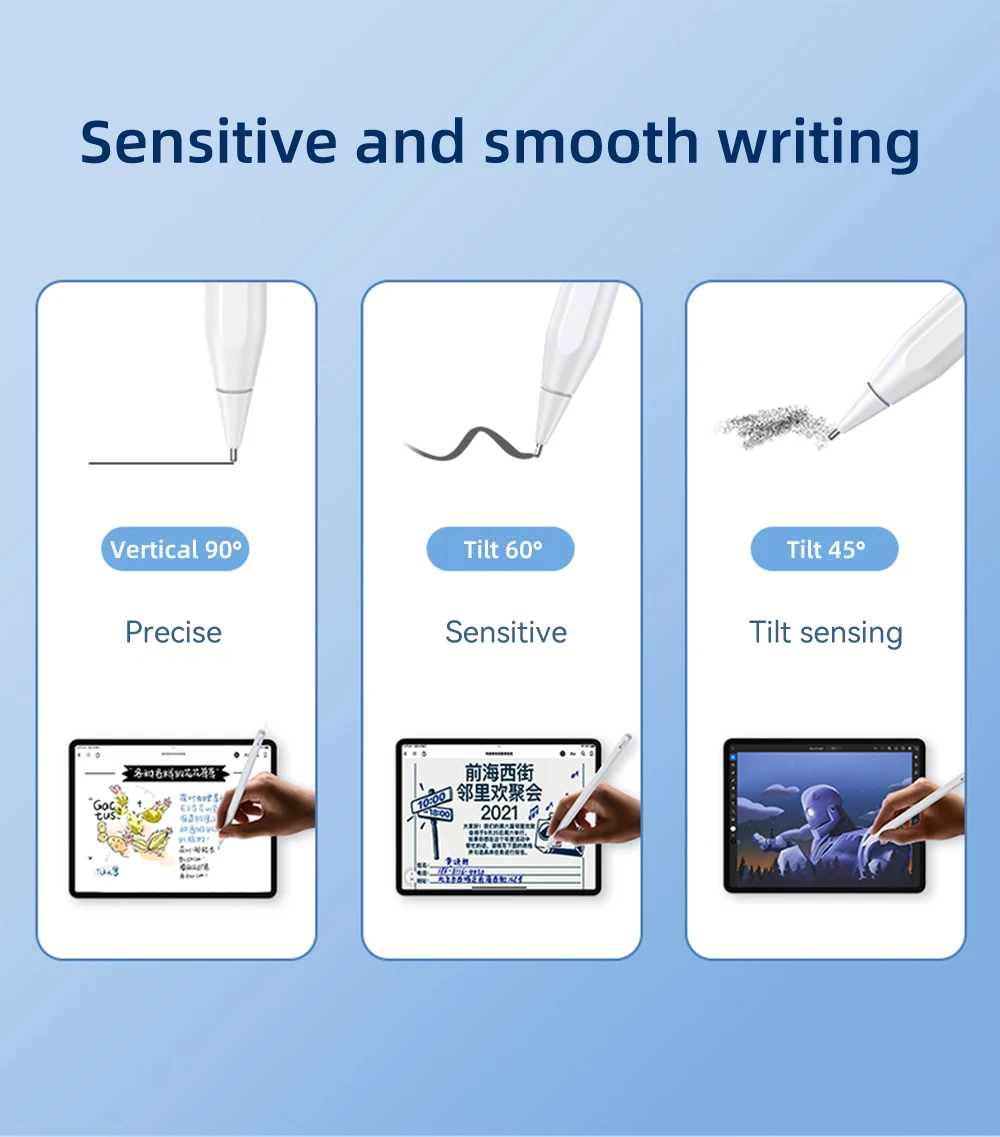 Alta precisión y sin retraso prácticamente: puede usarlo para dibujar fácilmente líneas perfectas, presione con fuerza para obtener líneas gruesas, presione ligeramente para obtener líneas delgadas, cree sombreado simplemente inclinando su lápiz Apple