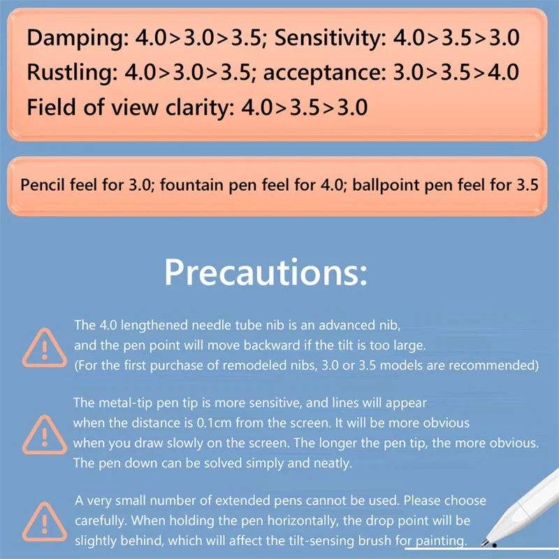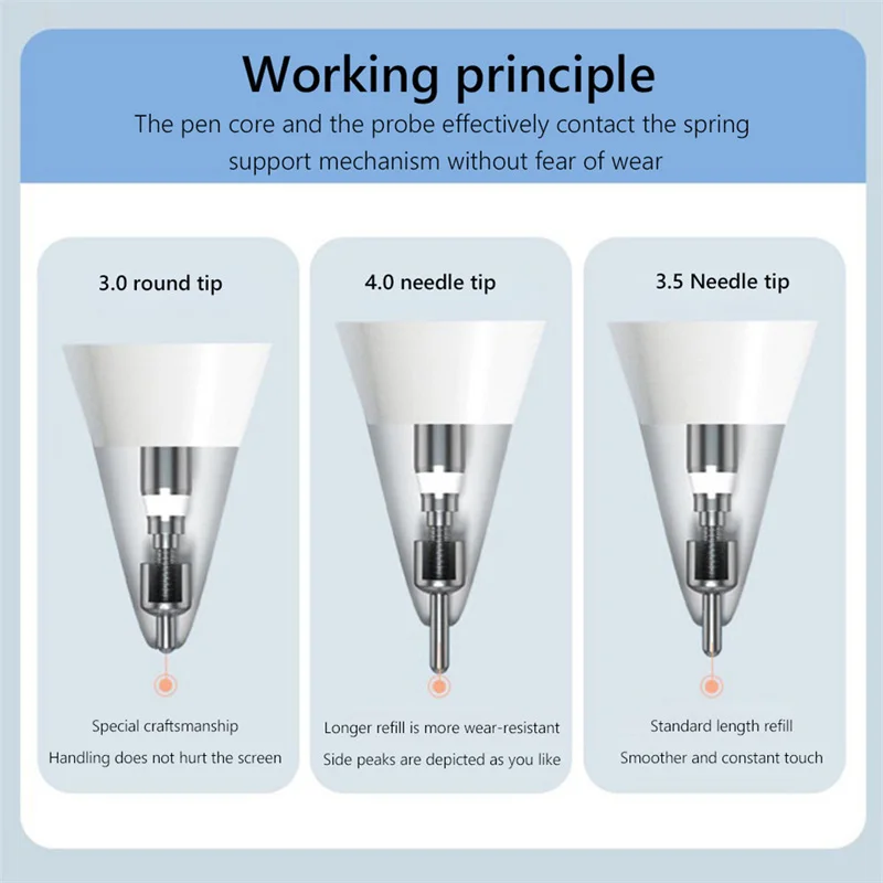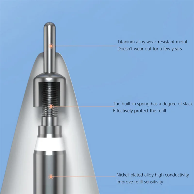 3.Control preciso: 1 mm de diámetro, control preciso de los detalles, punta más delgada única, la misma alta presión que la punta original, diseño de antena de bola de carburo de tungsteno simulado, más cerca de un bolígrafo tipo lápiz, sin demoras, escritura libre, dibujo inclinado, flexible y preciso, escribiendo cómodamente.