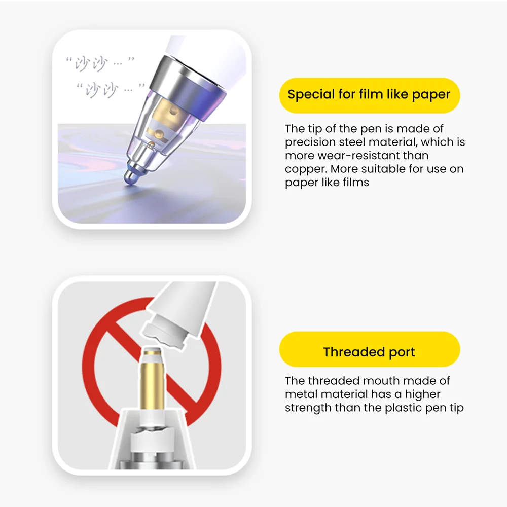 [Experiencia de escritura fluida]: esta punta de metal proporciona una experiencia de escritura suave y fluida en la pantalla del dispositivo.La precisión y el deslizamiento que ofrece lo hacen ideal para trabajos detallados, documentación o creación artística con Apple Pencil.