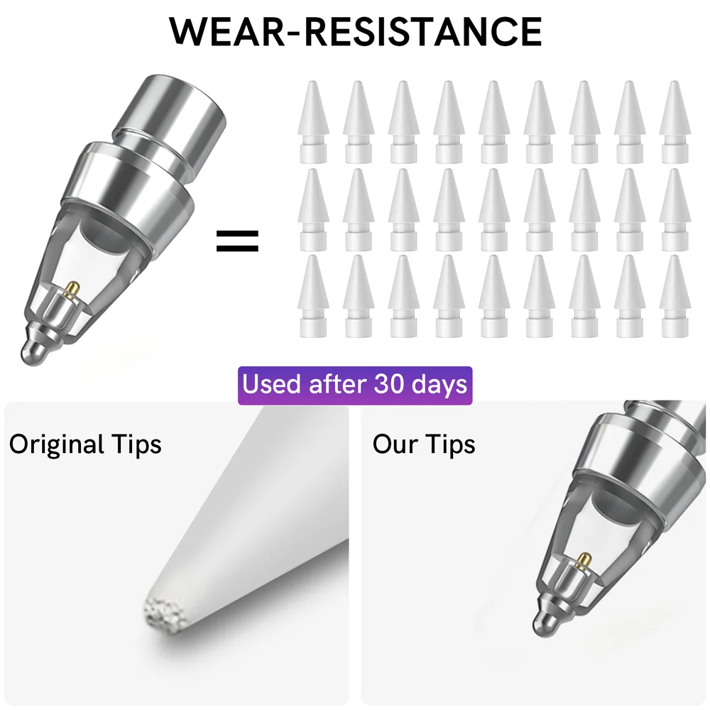 [Durable y confiable]: nuestras puntas de metal Apple Pencil están diseñadas con materiales resistentes al desgaste para garantizar su vida útil y confiabilidad.Puede soportar largos períodos de uso sin romperse, proporcionando un compañero confiable para sus necesidades de escritura y dibujo digital.