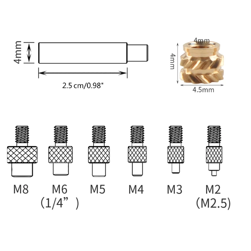 El paquete incluye1 Juego de tuercas de inserción de calor