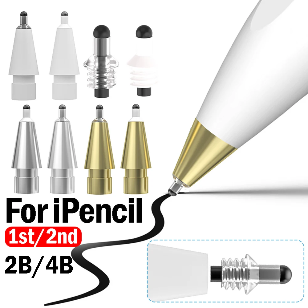 Comprar Puntas de repuesto para IPad, Apple, IPencil de 1a/2a generación, tapa protectora de silicona suave, puntas de lápiz de Metal 2B 4B, 1-4 Uds.