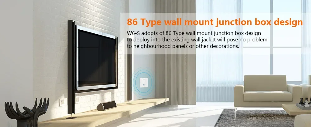 W6-S está diseñado para proporcionar cobertura wifi para habitaciones de hotel, villas, residencias universitarias, salas de hospitales y otros sitios con habitaciones densamente divididas.Adopta un diseño de caja de conexiones de montaje en pared tipo 86, puede integrarse perfectamente con la decoración existente sin ningún daño. Cumple con el estándar PoE 802.3af permite que se despliegue rápidamente.