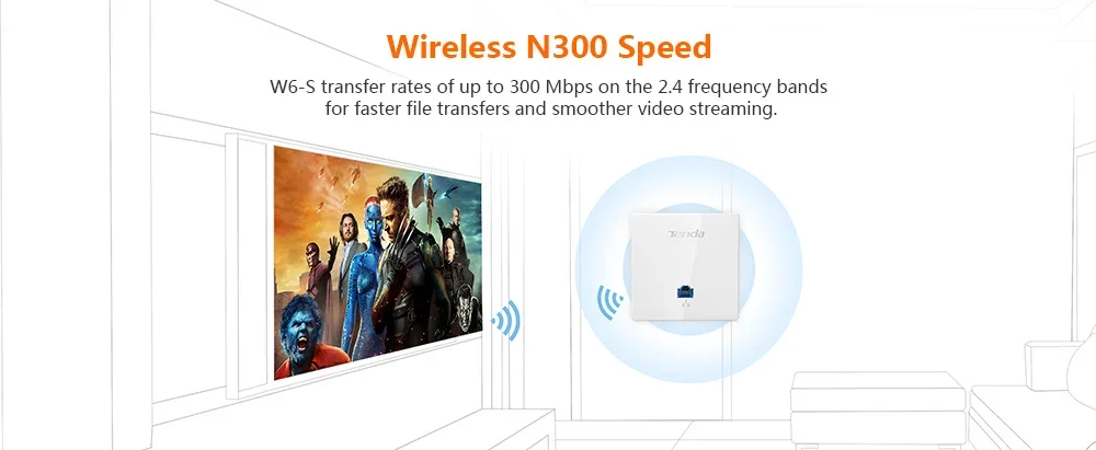 Punto de acceso inalámbrico de pared Tenda W6-S N300, AP WiFi de pared interior de 300 Mbps, Cliente+AP, IEEE 802.11n/g/b PoE,PPTP, L2TP 20 Clientes