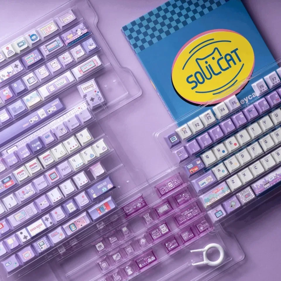 Video Game Meow Meow Theme Keycaps Set Customized PBT Sublimation Cherry Profile Keyboard Caps Mechanical Keyboard Accessories