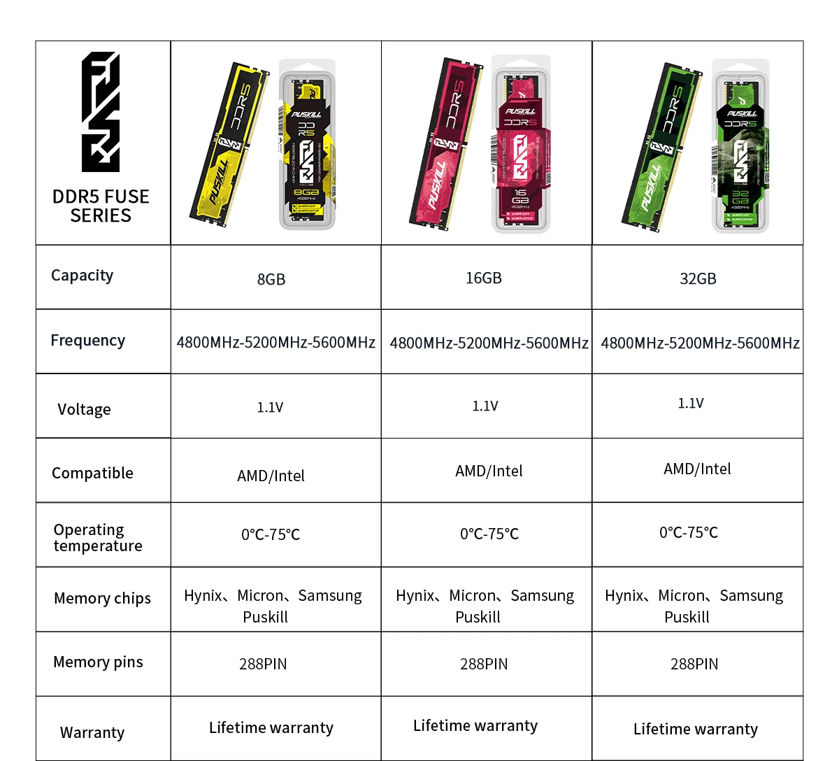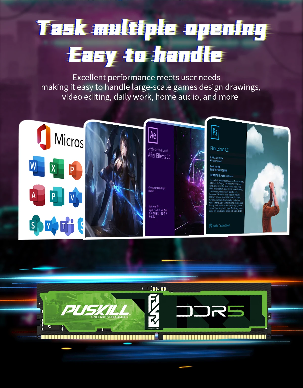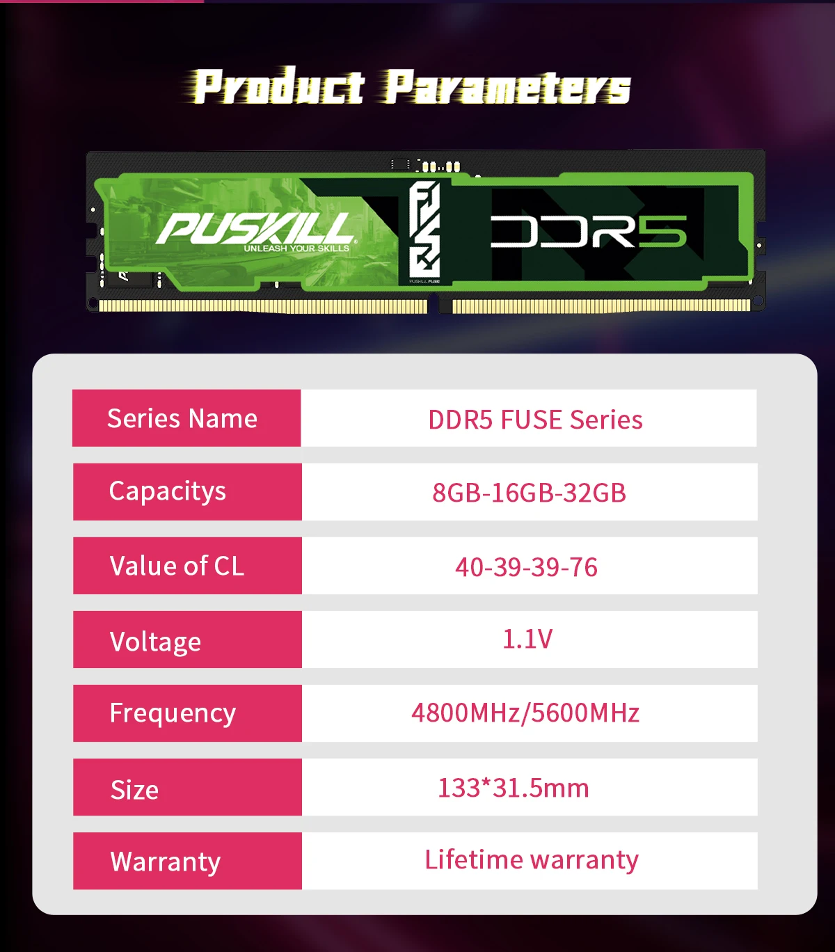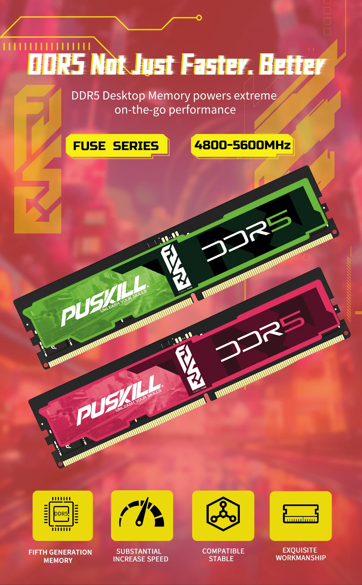 Comprar PUSKILL FUSE DDR5 Memoria RAM 32GB 16GB 8GB 1.1V 4800MHz 5600MHz PC5 288-PIN Memoria UDIMM de escritorio