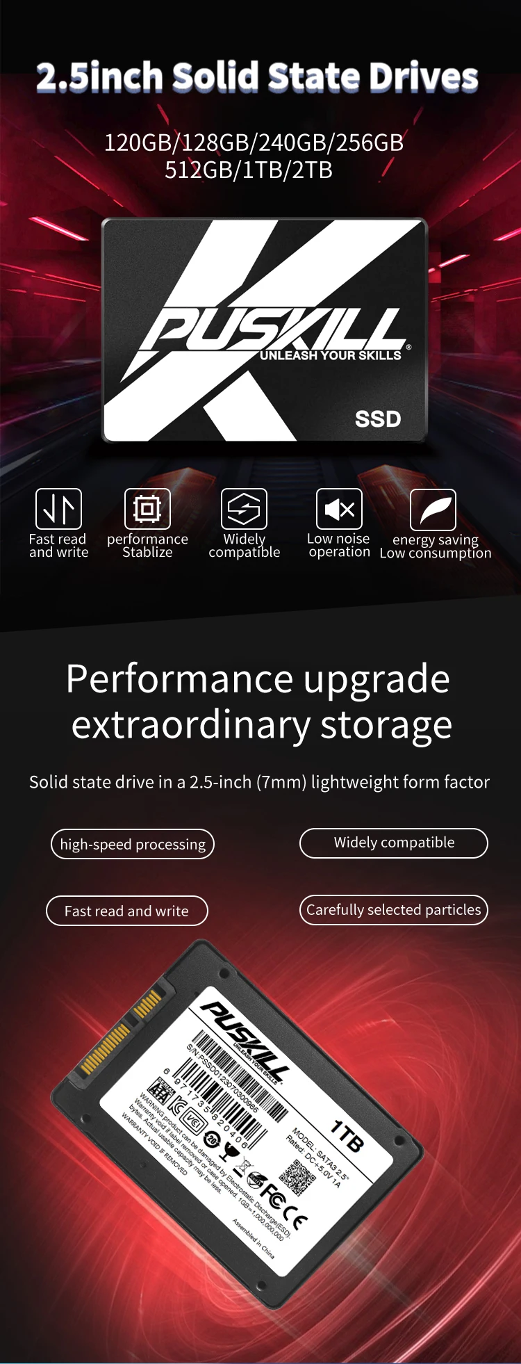 Comprar PUSKILL SATA3 SSD 1TB 2TB 256GB 240GB 2,5 disco duro interno 120GB 128GB 480GB 512GB disco duro de estado sólido para ordenador portátil de escritorio
