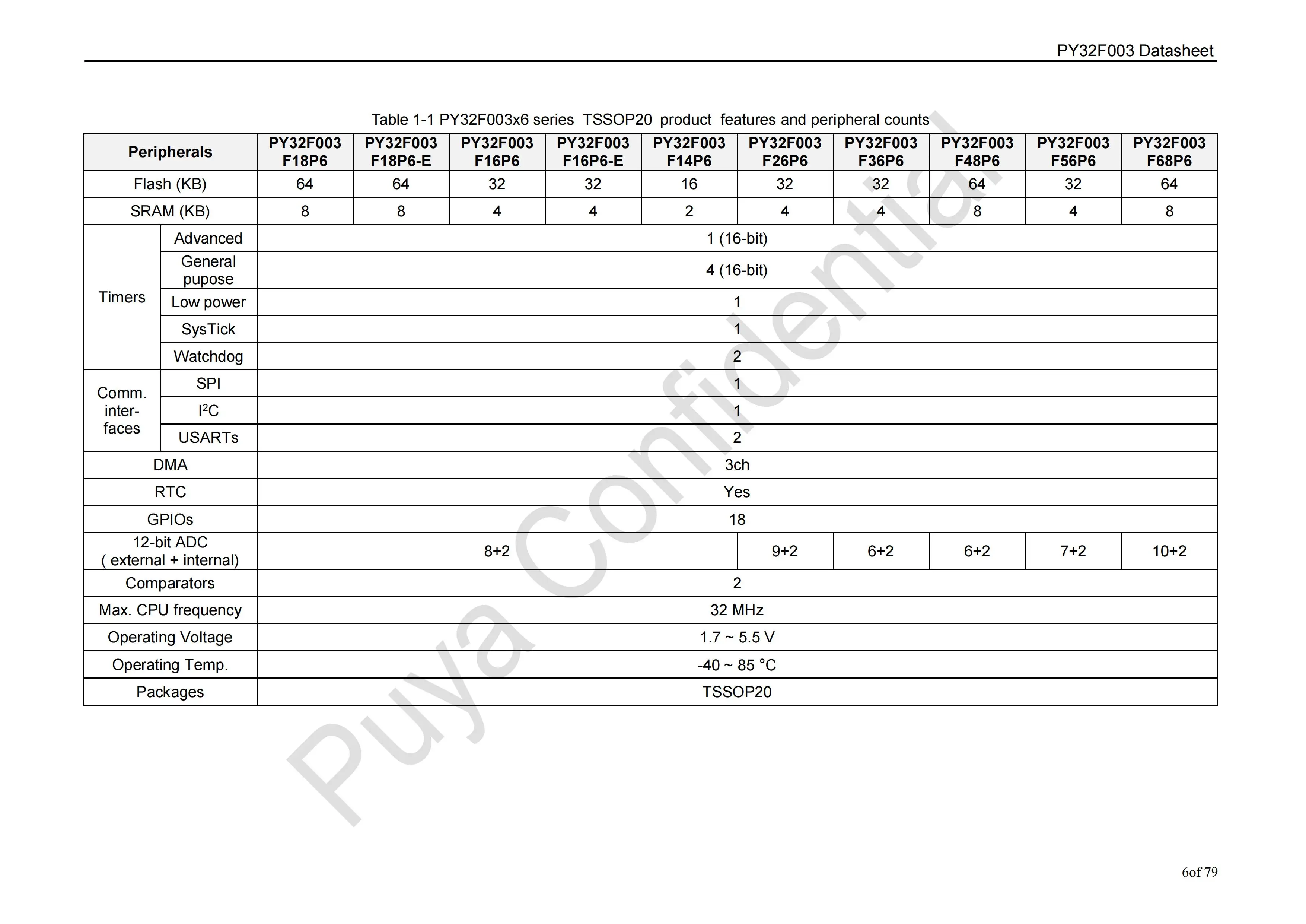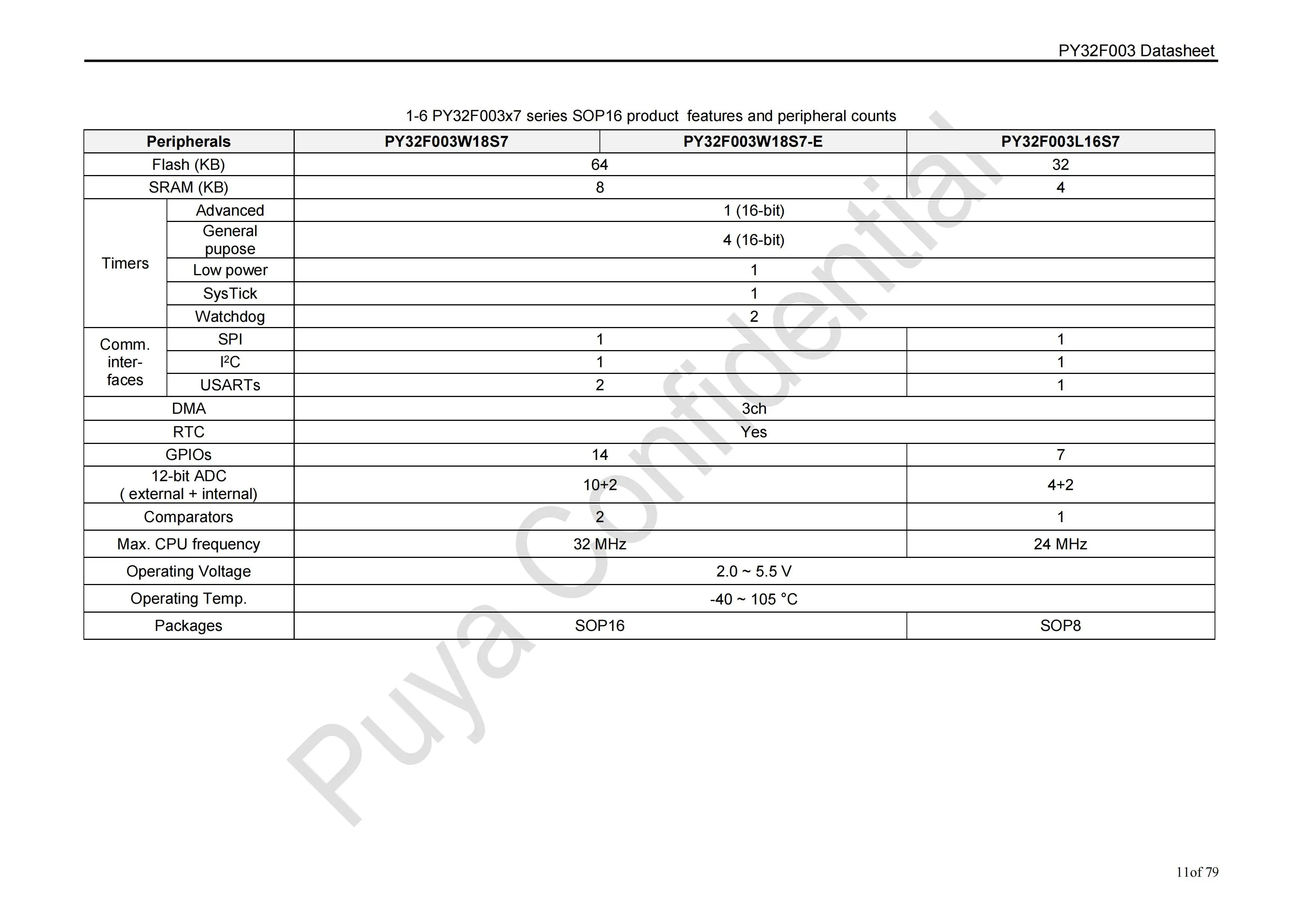 Model Number:PY32F003W18S6 SOP16