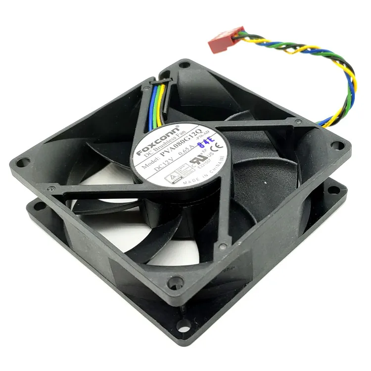 Product Description: The FOXCONN PVA080G12Q is an 80x80x25mm CPU cooling fan designed for efficient performance. Operating at 12V with a current of 0.65A, this fan features a 4-pin motherboard connector, supporting both PWM (Pulse Width Modulation) temperature control and speed monitoring. Its rotational speed ranges from 900 to 4600 RPM (±5%), delivering an airflow of 19 to 62.5 CFM with a noise level of 16 to 47 dBA. The fan utilizes a hydraulic sealed bearing. The frame and blades are made from injection-molded PBT with 30% glass fiber and V0 flame retardant rating. The cable length is approximately 60cm, providing ample reach for motherboard connections. Key Selling Points: PWM Temperature Control: Fan speed automatically adjusts based on CPU temperature for optimal cooling. High Airflow Potential: Reaches up to 62.5 CFM for effective cooling under load. Durable Construction: Frame and blades made with robust, flame-retardant PBT material. Speed Monitoring: Supports RPM feedback to the motherboard. Standard 8025 Size: Fits common 80mm fan mounts for CPU coolers and cases. Long Cable Length: 60cm cable provides flexibility in installation. Application Scenarios: This 80mm PWM CPU fan with temperature control is ideal for: CPU Cooling: Providing efficient and temperature-controlled cooling for various CPU models. PC Case Cooling: Assisting in overall system airflow and heat management. Performance PC Builds: Suitable for systems where effective cooling is a priority. Motherboard Integrated Cooling: Easy connection and control via the motherboard's 4-pin header. Replacement Fans: Suitable for replacing less efficient 80mm CPU or case fans. Hot Search Keywords (integrated within the text): PWM fan CPU fan 80mm fan 12V fan temperature control fan case fan computer fan high airflow fan performance fan system fan