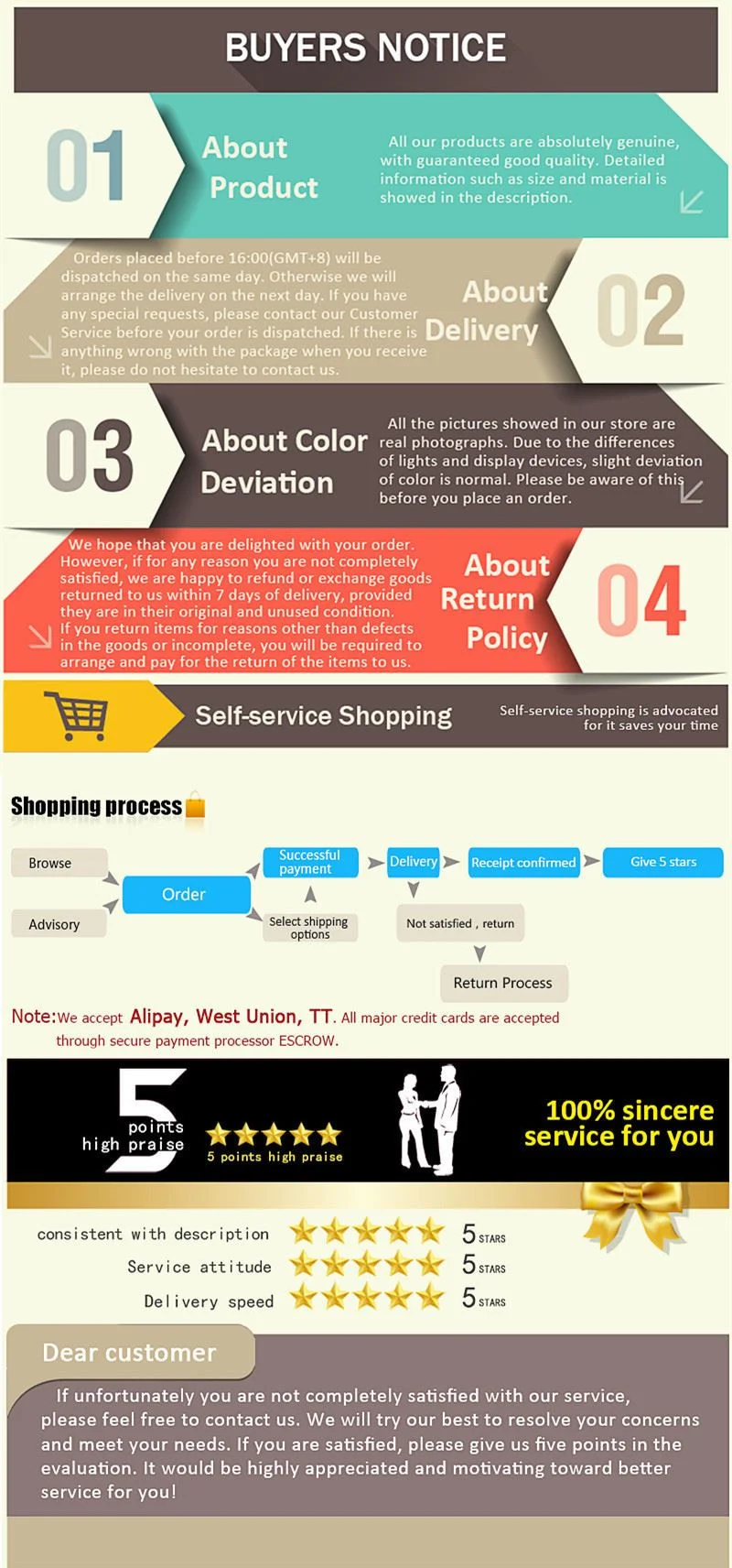 1. Debido a la diferencia entre los diferentes monitores, es posible que la imagen no refleje el color real del artículo. Garantizamos que el estilo es el mismo que se muestra en las imágenes.