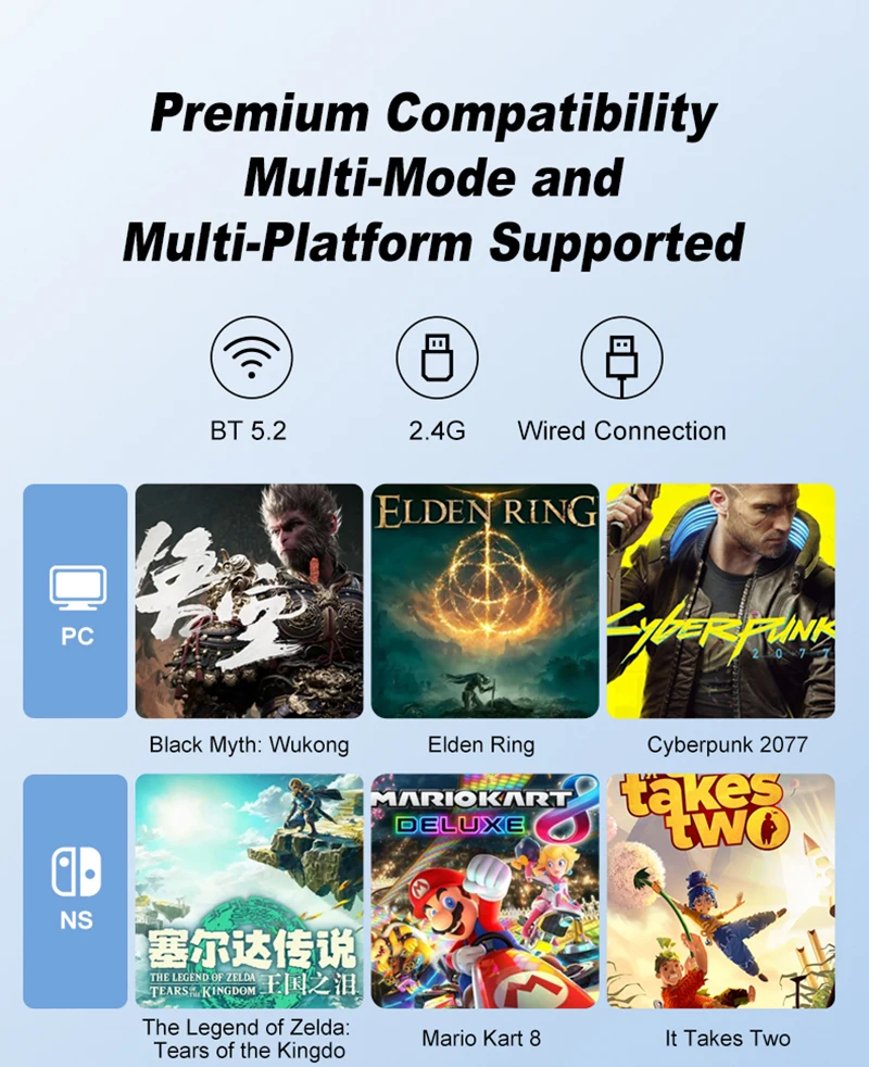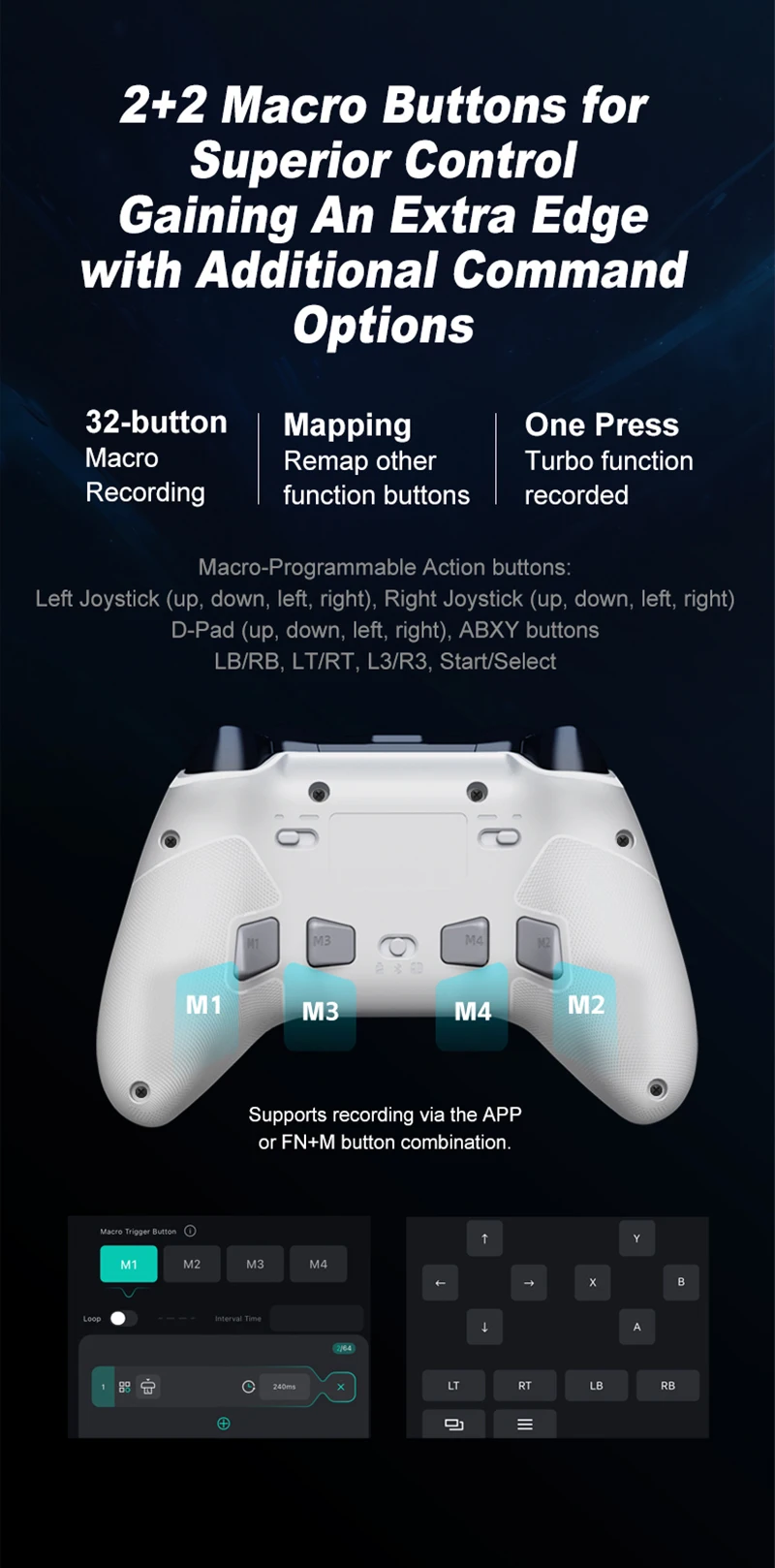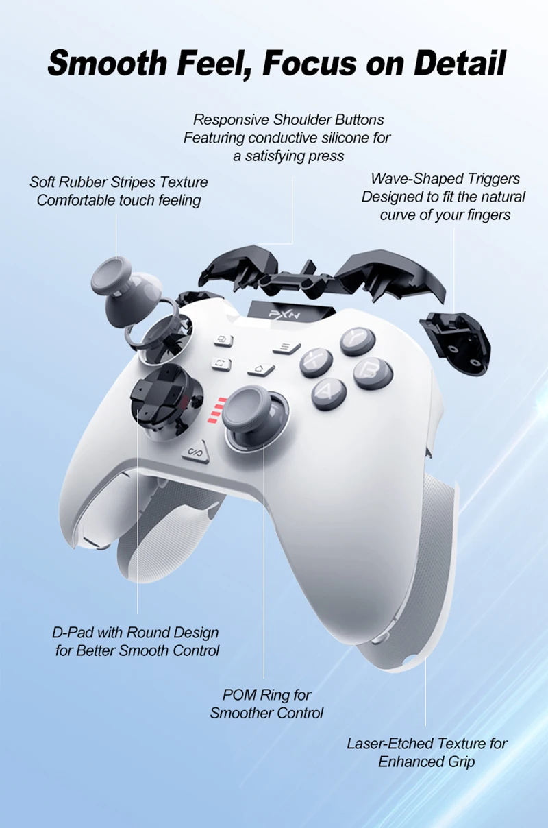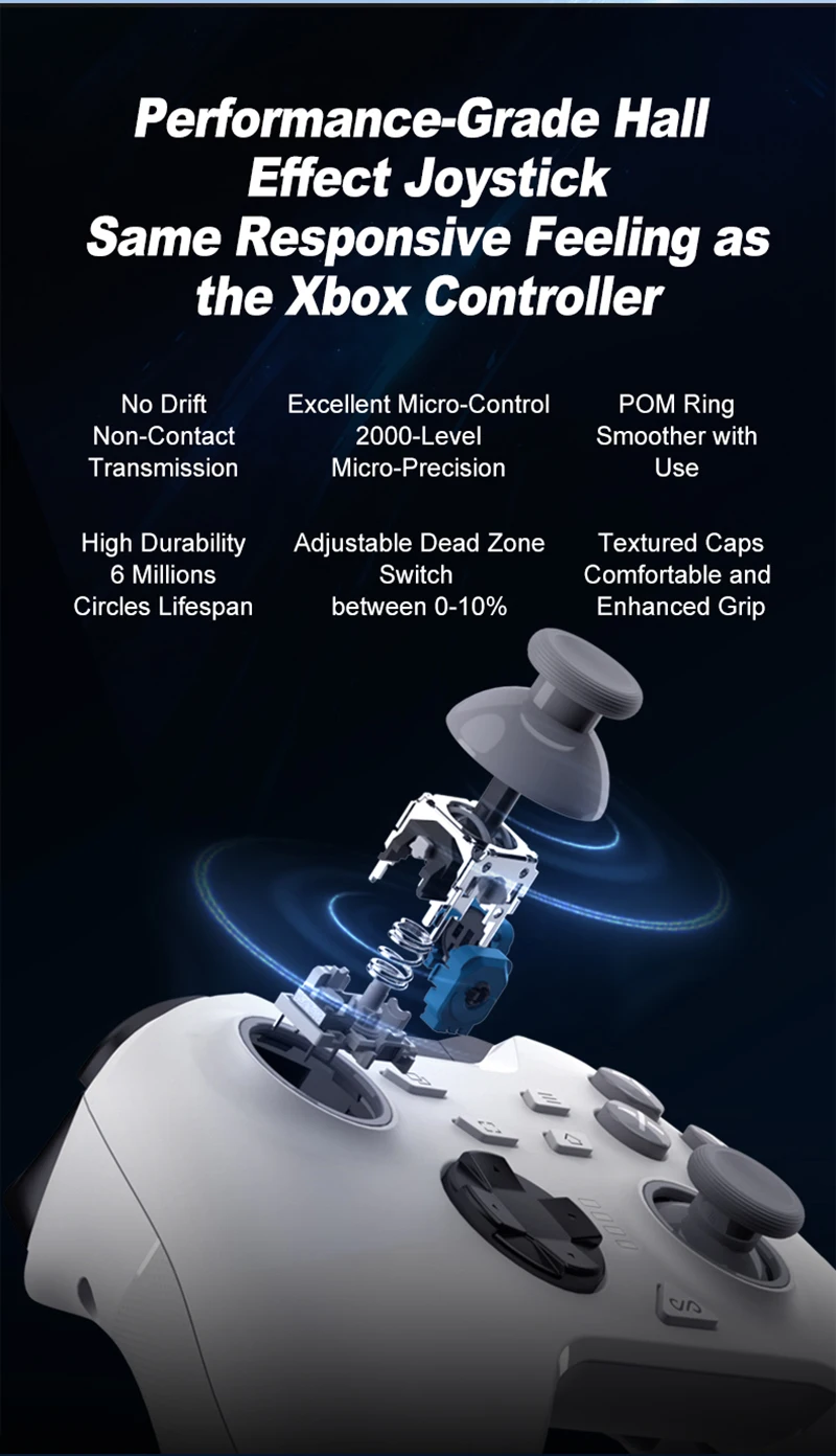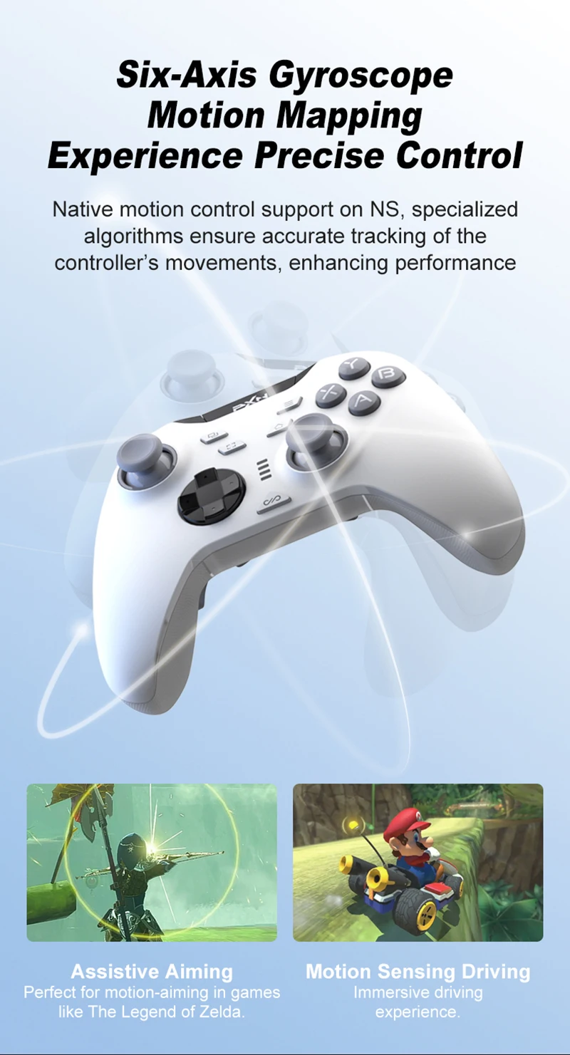Este controlador es un verdadero cambio de juego: compatible con PC, Nintendo Switch y dispositivos móviles, cuenta con joysticks magnéticos de efecto Hall para una precisión inigualable y botones traseros responsivos para una experiencia de juego de nivel profesional.