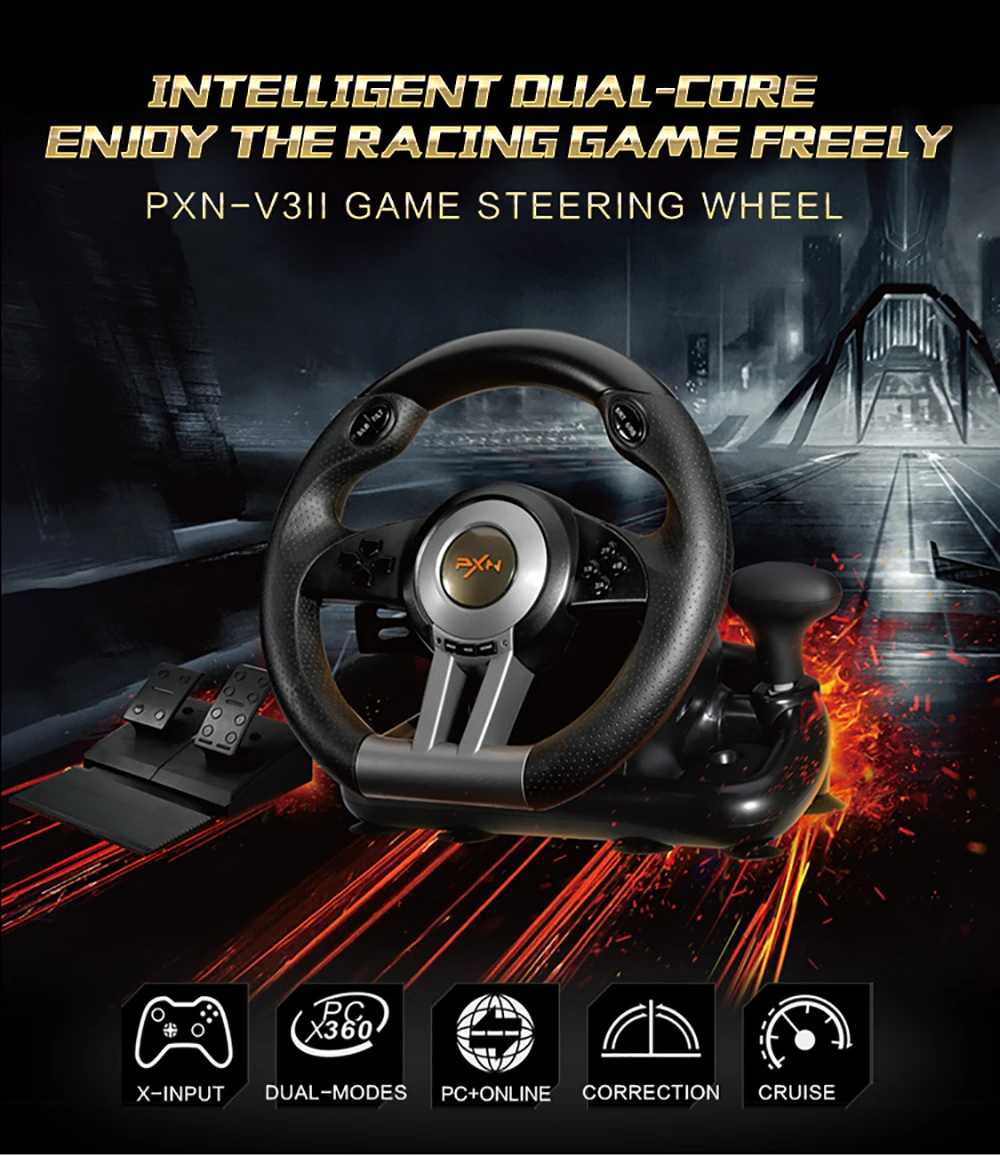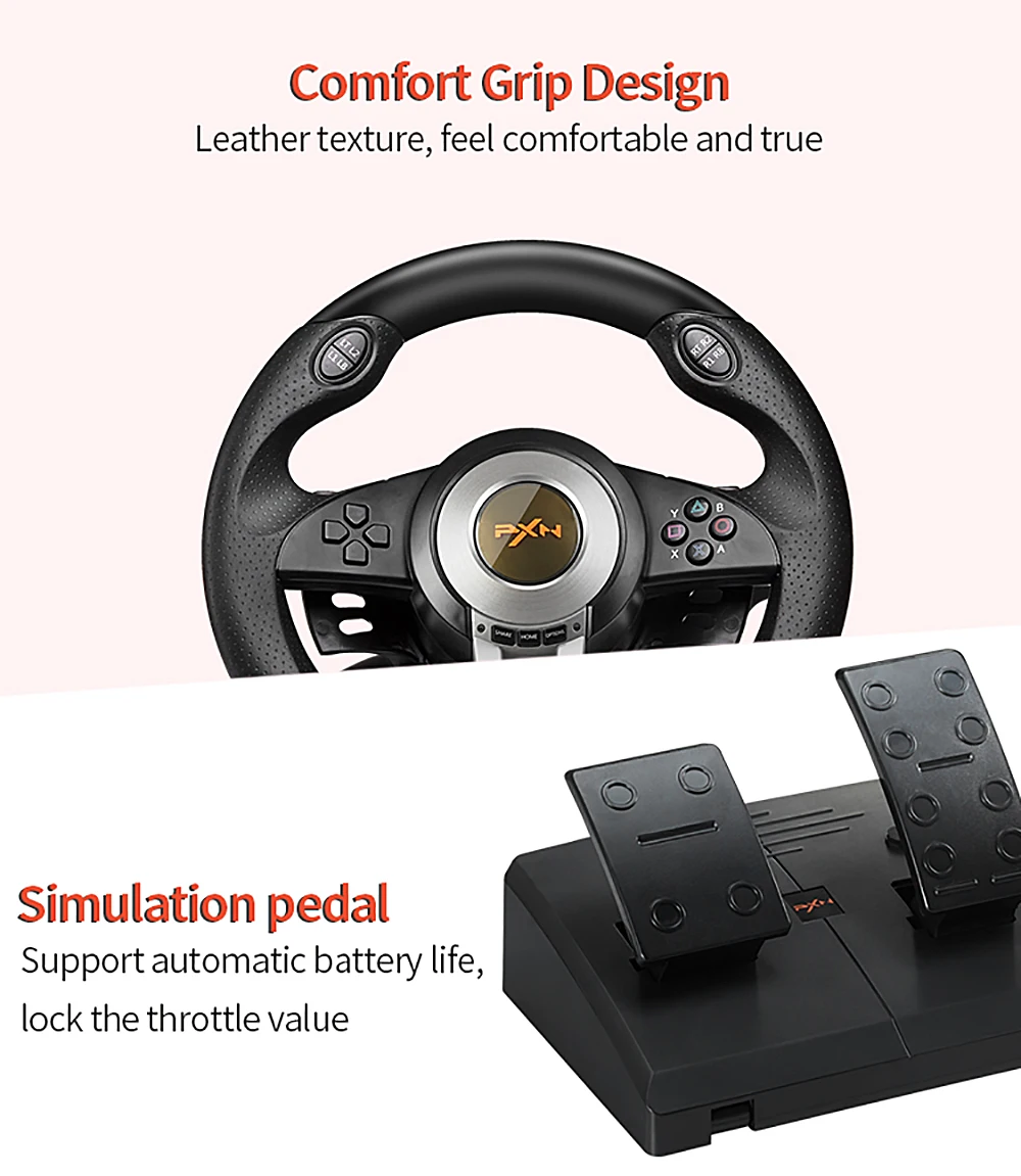 Comprar PXN V3II controlador de juego de carreras para PC, Pedal de volante para juegos, vibración, PS3, PS4, n-switch