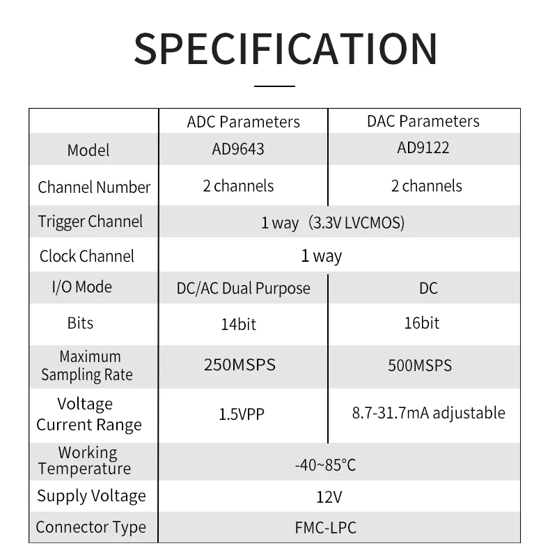Comprar PZ-FL4322 Puzhi AD de doble canal (250 M) DAC de doble canal (500 M) módulo fpga FMC LPC FMC Placa hija