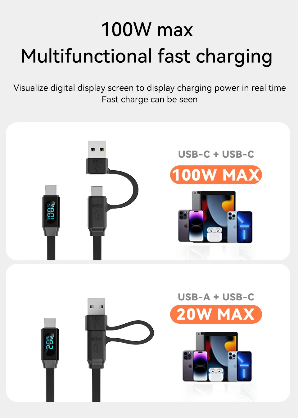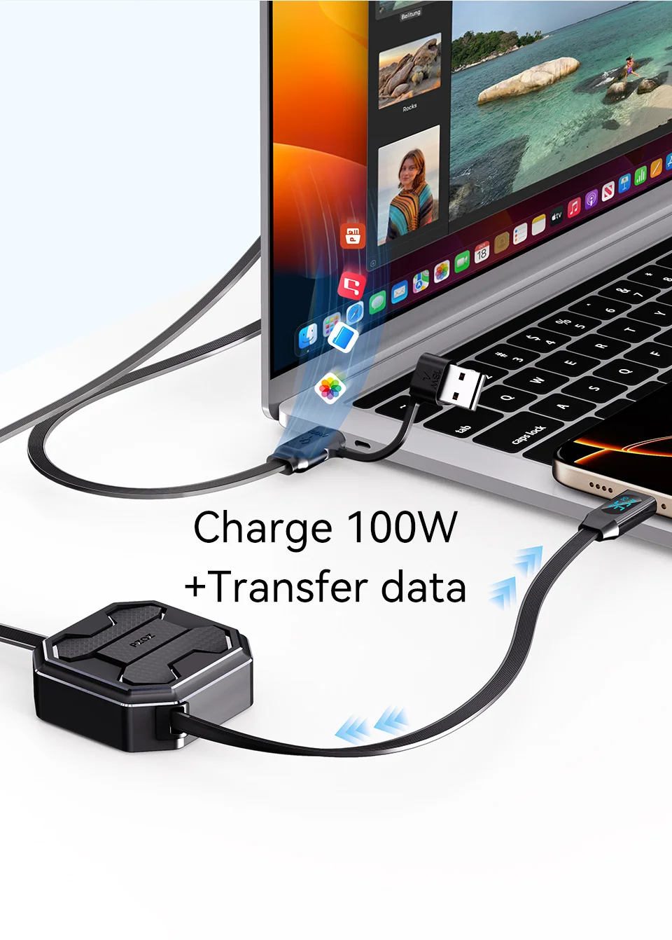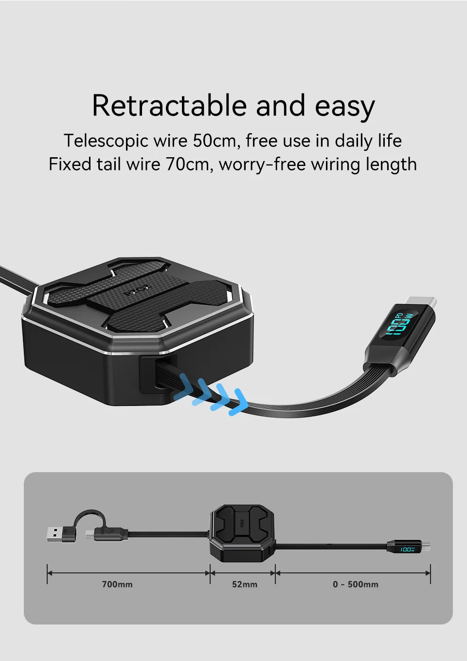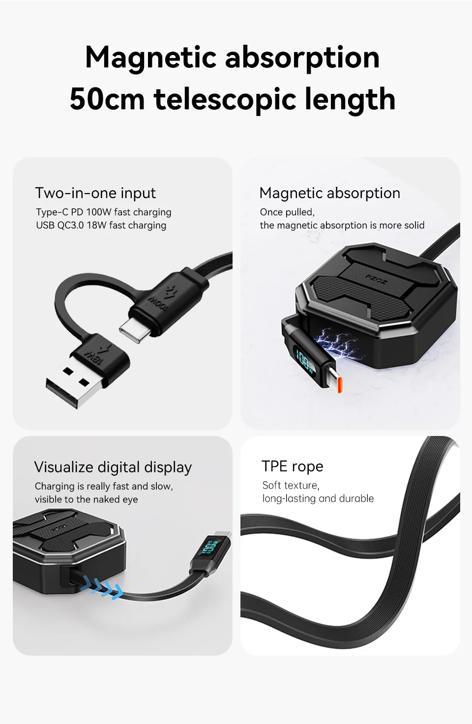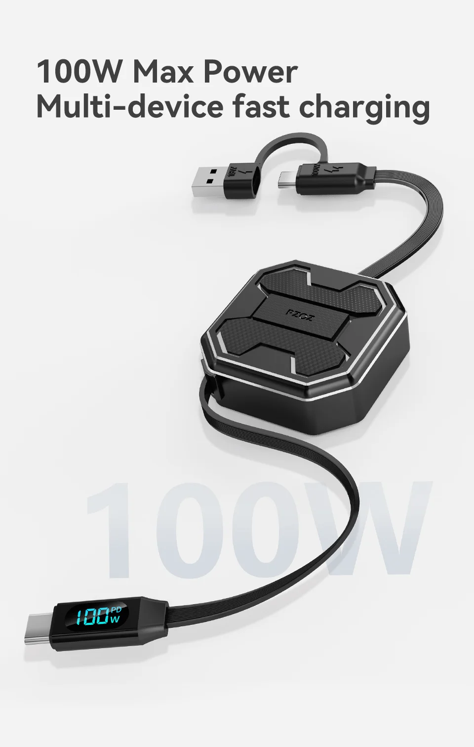 No se puede confirmar el soporte de 100W ya que no hay cargador, pero personalmente confirmé hasta PD 30W. Se carga súper rápido y solo un lado es retráctil, lo que lo convierte en exactamente el artículo que estaba buscando. Es un poco decepcionante que el cable que conecta al cargador no se pueda ajustar en longitud. Honestamente, el cable no parece duradero a primera vista, pero dado que es para uso en el coche y no se utilizará de manera intensa, planeo escribir una reseña adicional si surgen problemas de durabilidad después del uso.