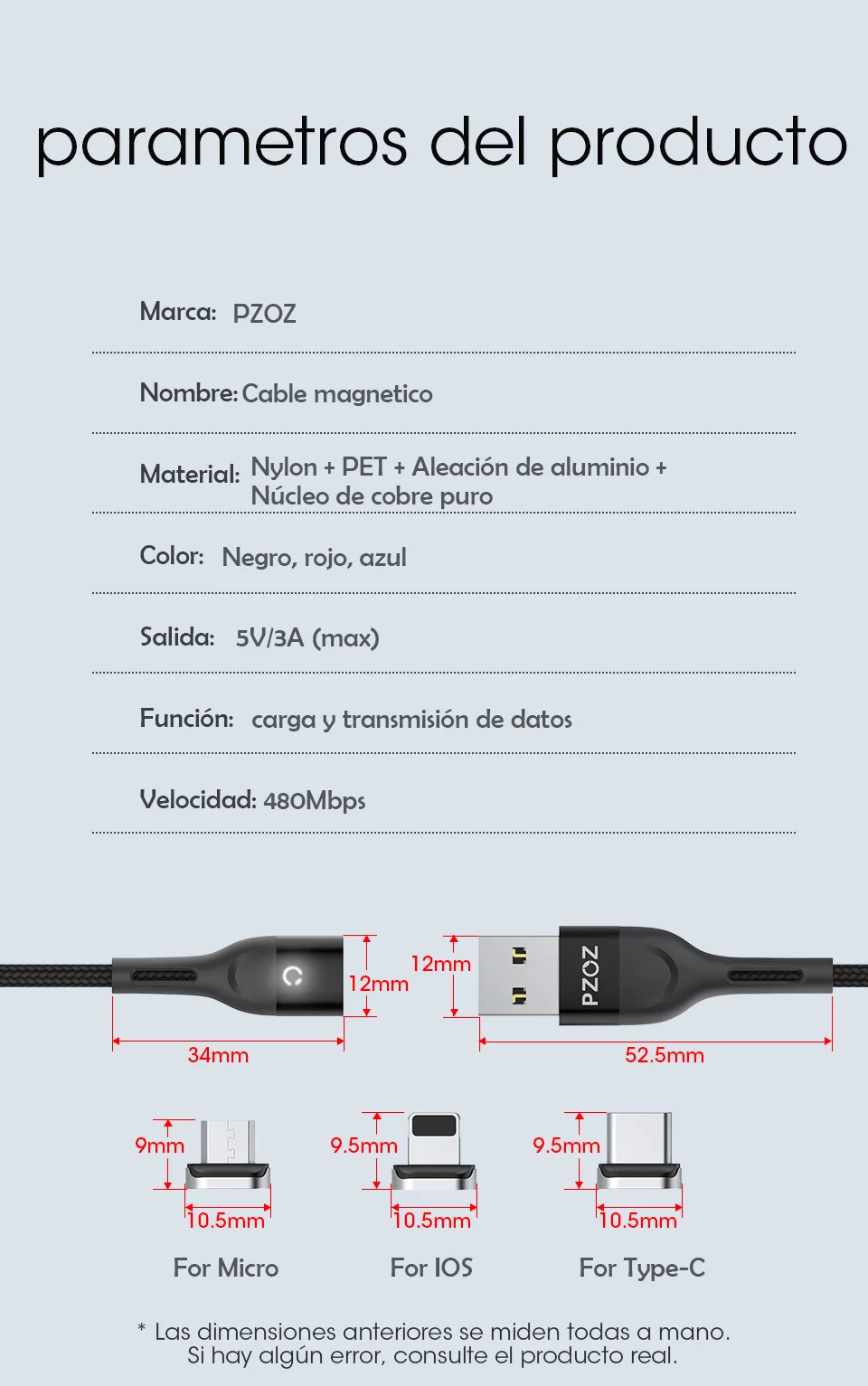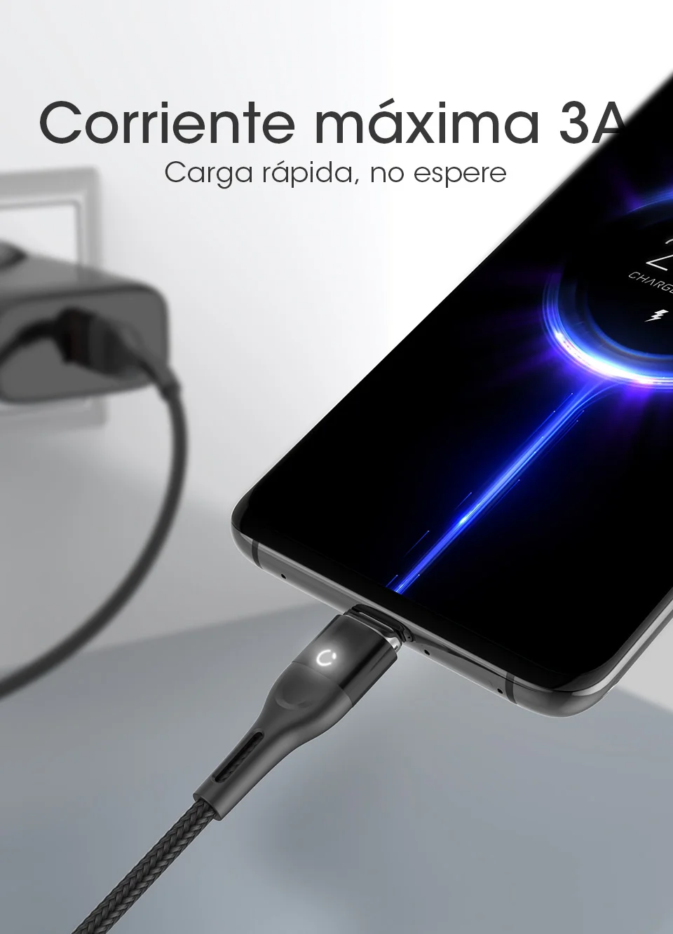 Sugerencias: ● Este enchufe de carga magnético solo admite este cable de carga. No coincide con otro cable. Gracias