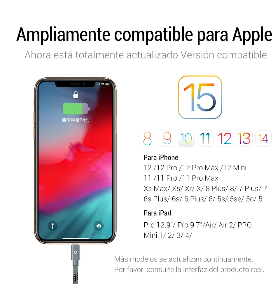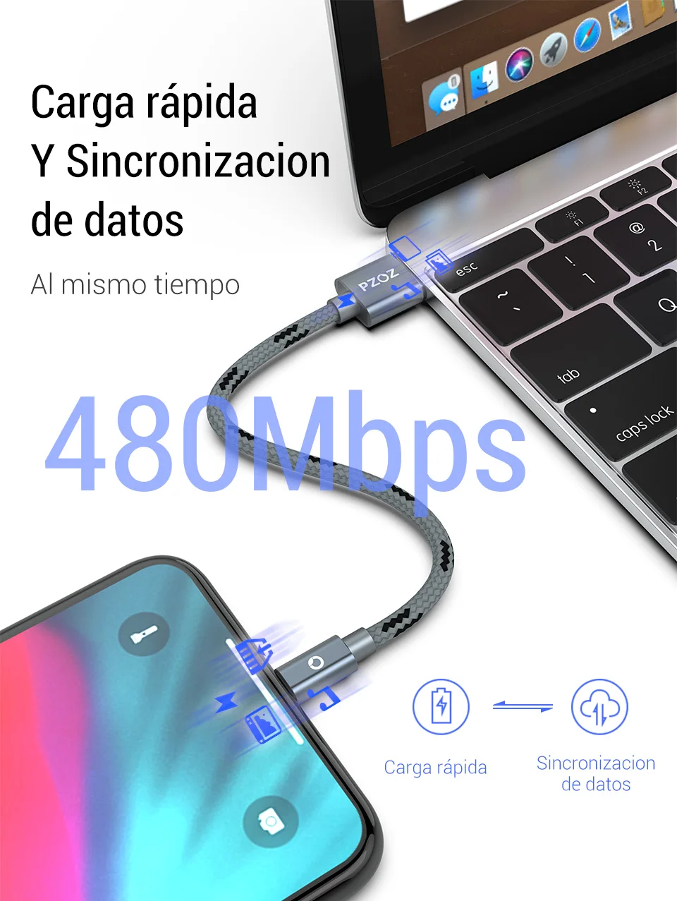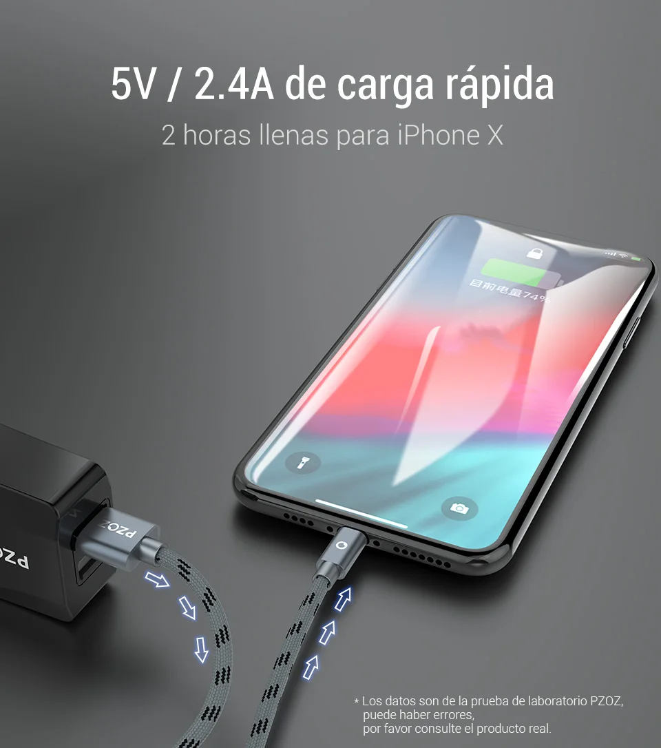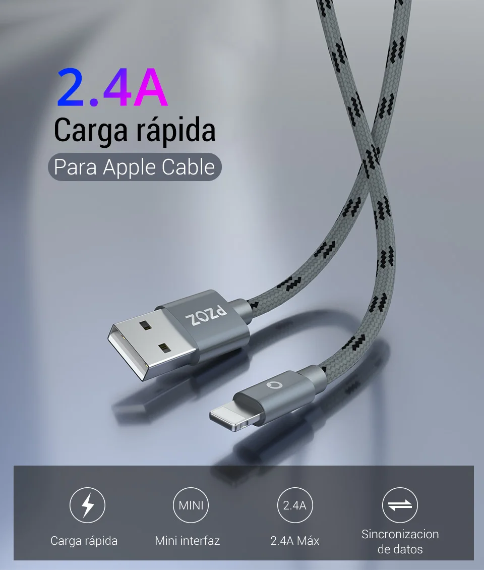 Comprar PZOZ Cable Usb para cable de iphone 14 13 12 11 pro max Xs Xr X SE 2 8 2 8 2 8 2 8 7 6 plus 6s 5s ipad aire mini 4 rápido cables de carga para cargador iphone charger accesorios 1M 2M usb cable