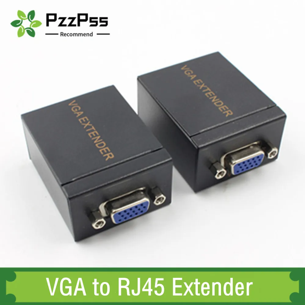 PzzPss 1 par receptor transmisor VGA a RJ45 extensor repetidor por Cat5e/6 hasta 60M VGA UTP para PC portátil proyector de ordenador