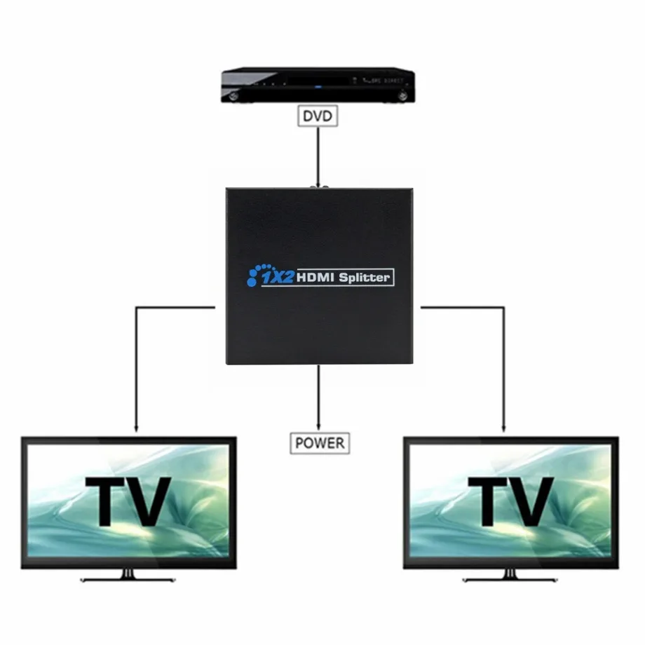 El paquete incluye 1 * 1 divisor HDMI de 1 entrada y 2 salidas.