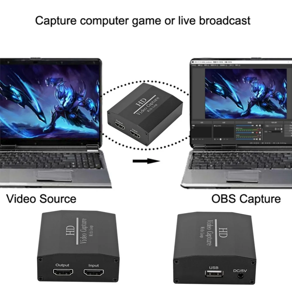 PzzPss 4K 60hz Loop Out HDMI tarjeta de captura Audio vídeo Placa de grabación transmisión en vivo USB 2,0 1080p grabador para cámara de juego PS4