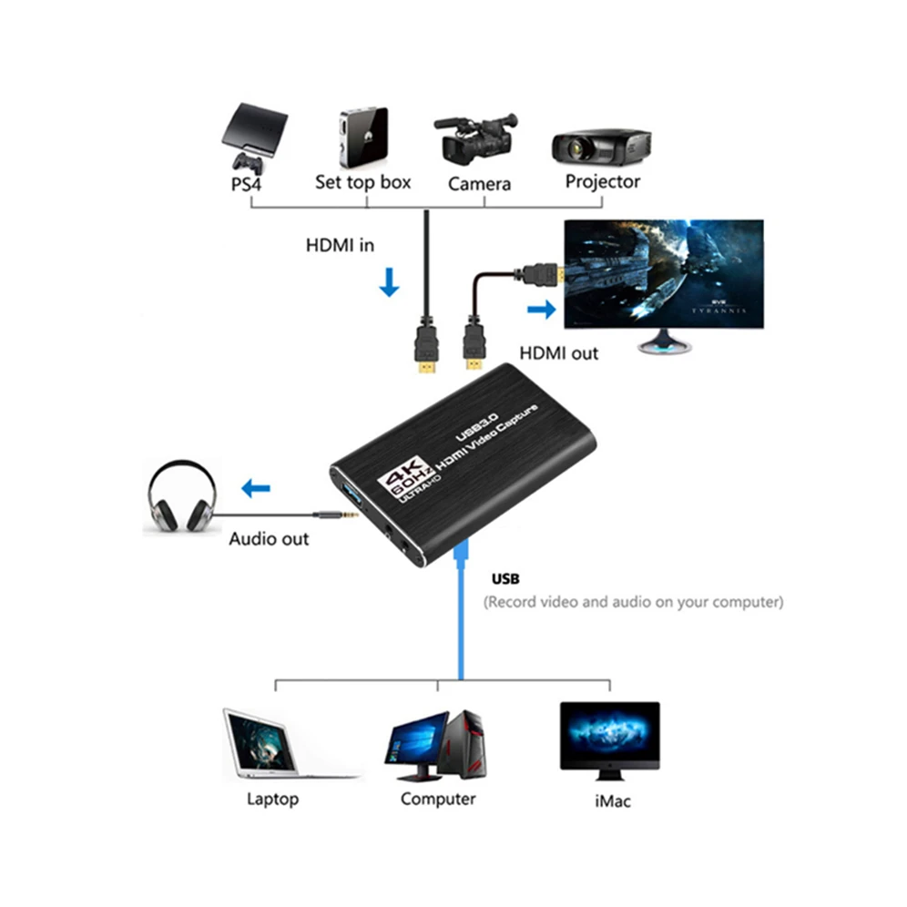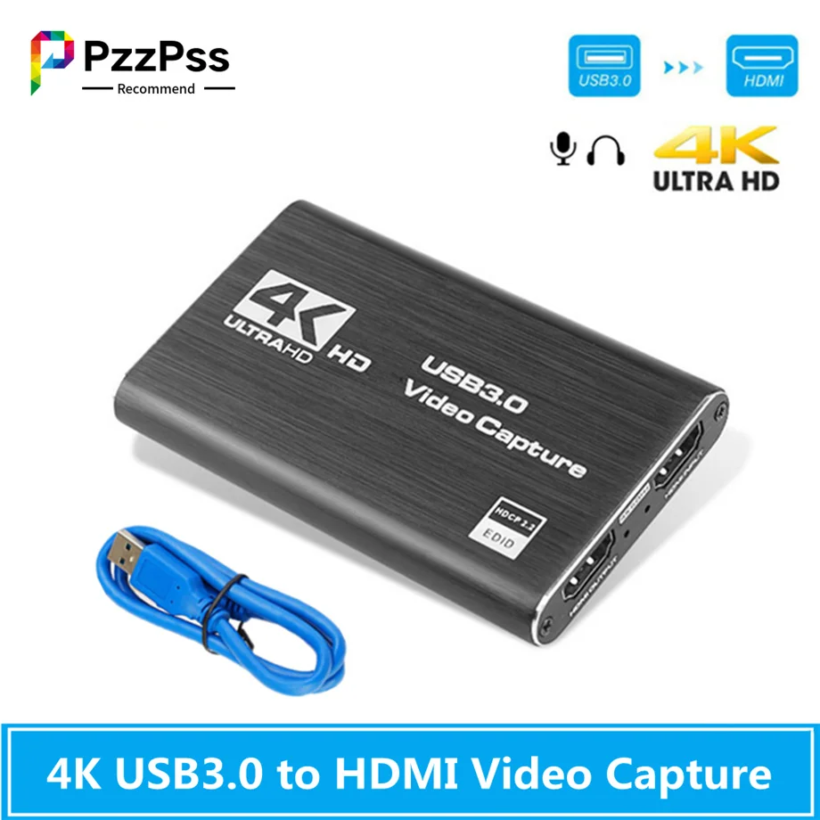 Comprar PzzPss 4K USB 3,0 tarjeta de captura de vídeo compatible con HDMI 1080P 60fps HD grabadora de vídeo Grabber para OBS captura tarjeta de juego en vivo