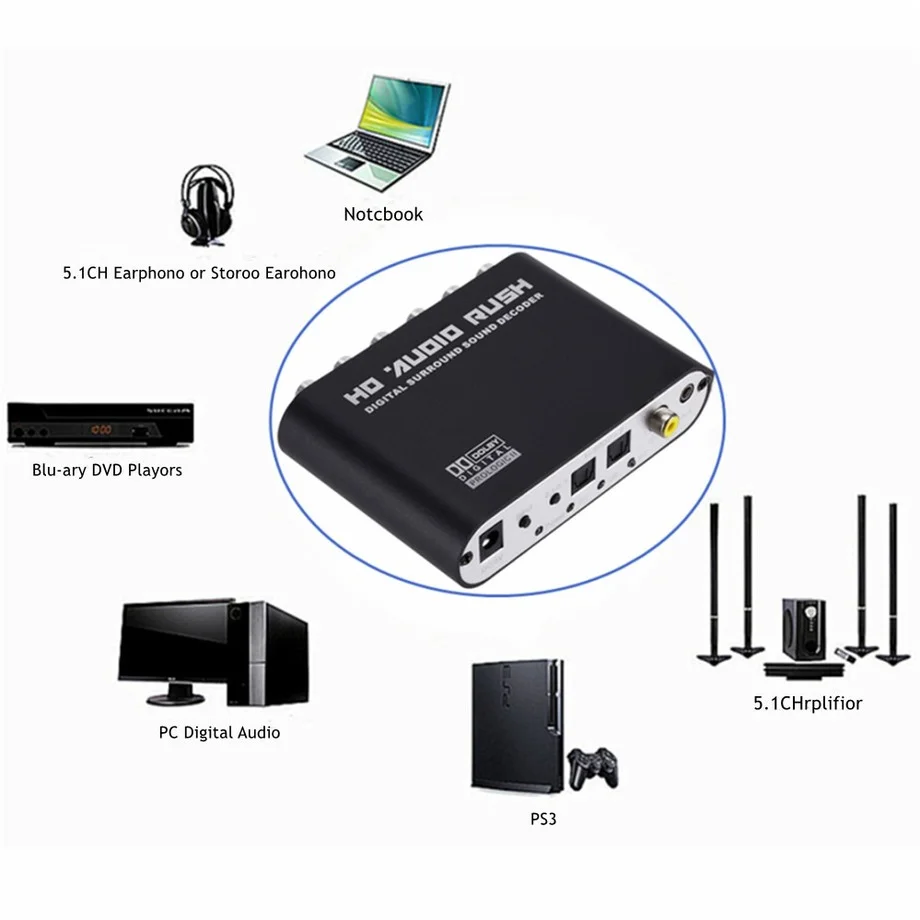Comprar PzzPss AC3 Audio Digital a analógico 5,1 canales estéreo DAC convertidor óptico SPDIF Coaxial AUX 3,5mm a 6 RCA amplificador decodificador
