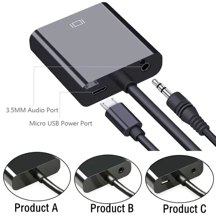 Especificación: 1. Señal de entrada: señal digital HDMI; 2. Señal de salida: Señal analógica VGA; 3. Resolución: 480p/720p/1080i/1080p (automático); 4. Soporte: Acuerdo con HDMI 1,3/1,4; 5. Peso: aproximadamente 40-50g 6. Color: Negro